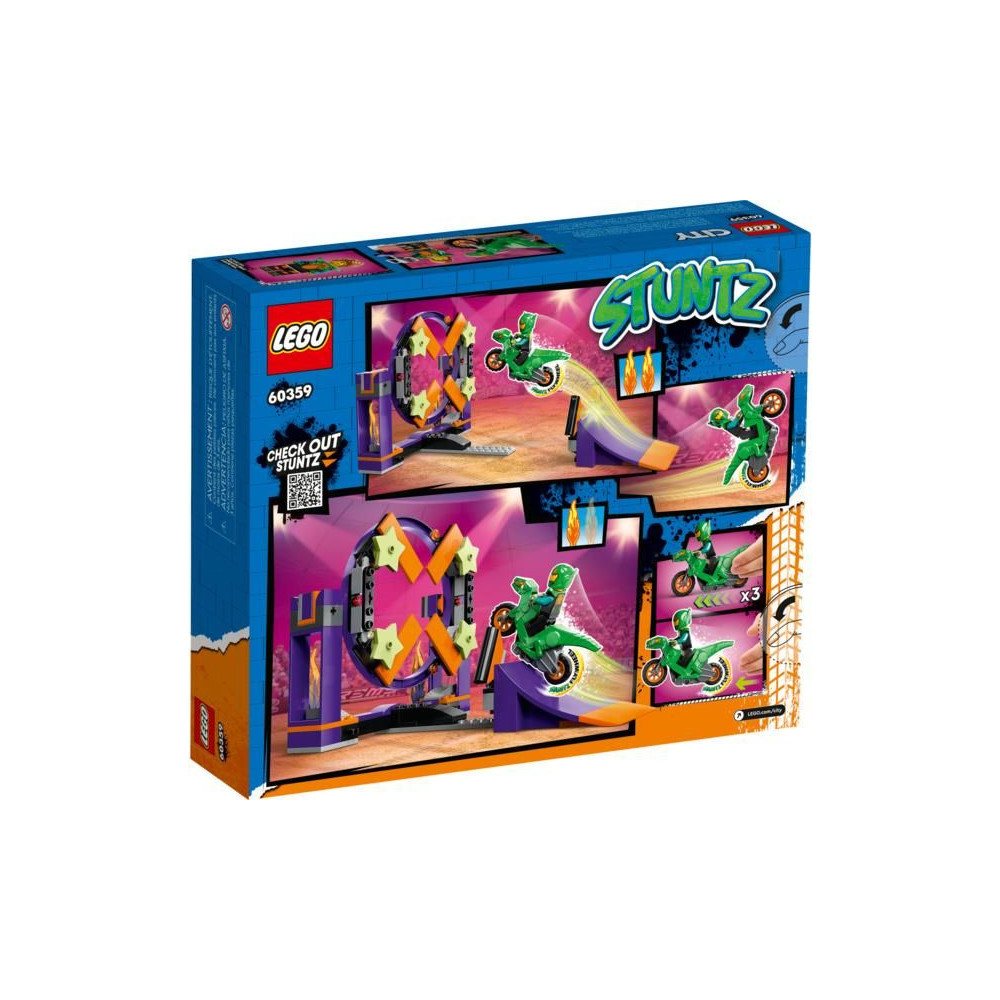 - Mi van a dobozban? - Ez a készlet egy LEGO® City Stuntz vízszintes vagy függőleges hurkot, egy kilövő rámpát, egy lendkerekes kaszkadőrbiciklit és egy minifigurás versenyzőt tartalmaz.