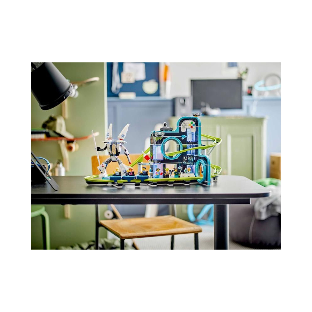 - Kifinomult készlet a kreatív játékhoz - A funkciók közé tartozik egy működő hullámvasút-vonat 3 kocsival, egy mozgatható robot egy minifigurának való üléssel és egy játéktermi videojáték-konzollal.
