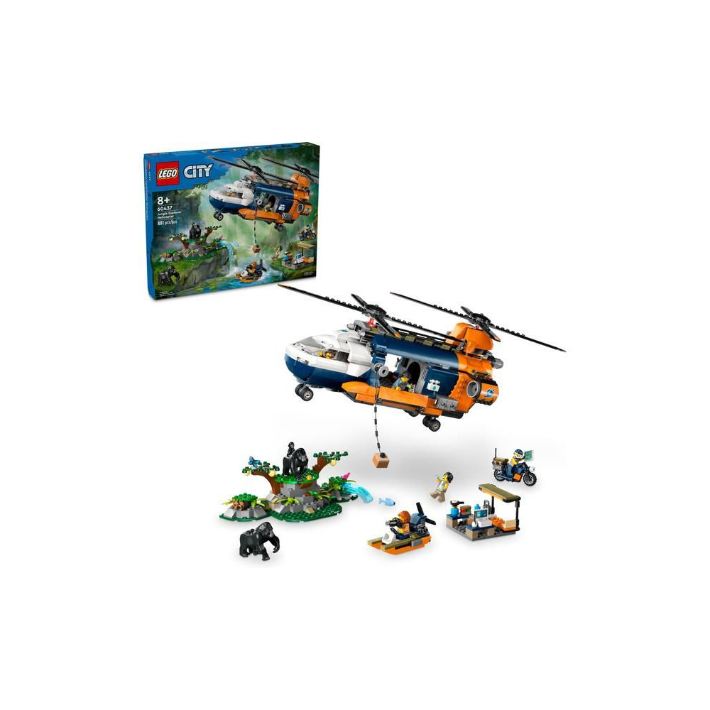 Örvendeztesd meg a kis felfedeződet a kalandos LEGO® City (60437) Dzsungelfedező helikopteres bázistábor készlettel 8 éves kortól, amely egy valósághű helikoptert tartalmaz két szinkronizált rotorral, 2 rakteret és egy működő csörlőt. A készlet tartalmaz továbbá egy motorkerékpárt, egy propelleres hajót és egy dzsungel-bázistábort, valamint 5 minifigurás kalandort és 3 gorillafigurát, köztük egy bébigorillát, a kreatív játékhoz és a meséléshez.