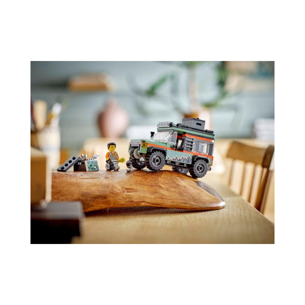 - Mit találsz a dobozban? – Tartalmaz mindent, amire a gyerekeknek szükségük van egy terepjáró teherautó modell és egy kalandor minifigura megépítéséhez a terepjáró kalandokhoz