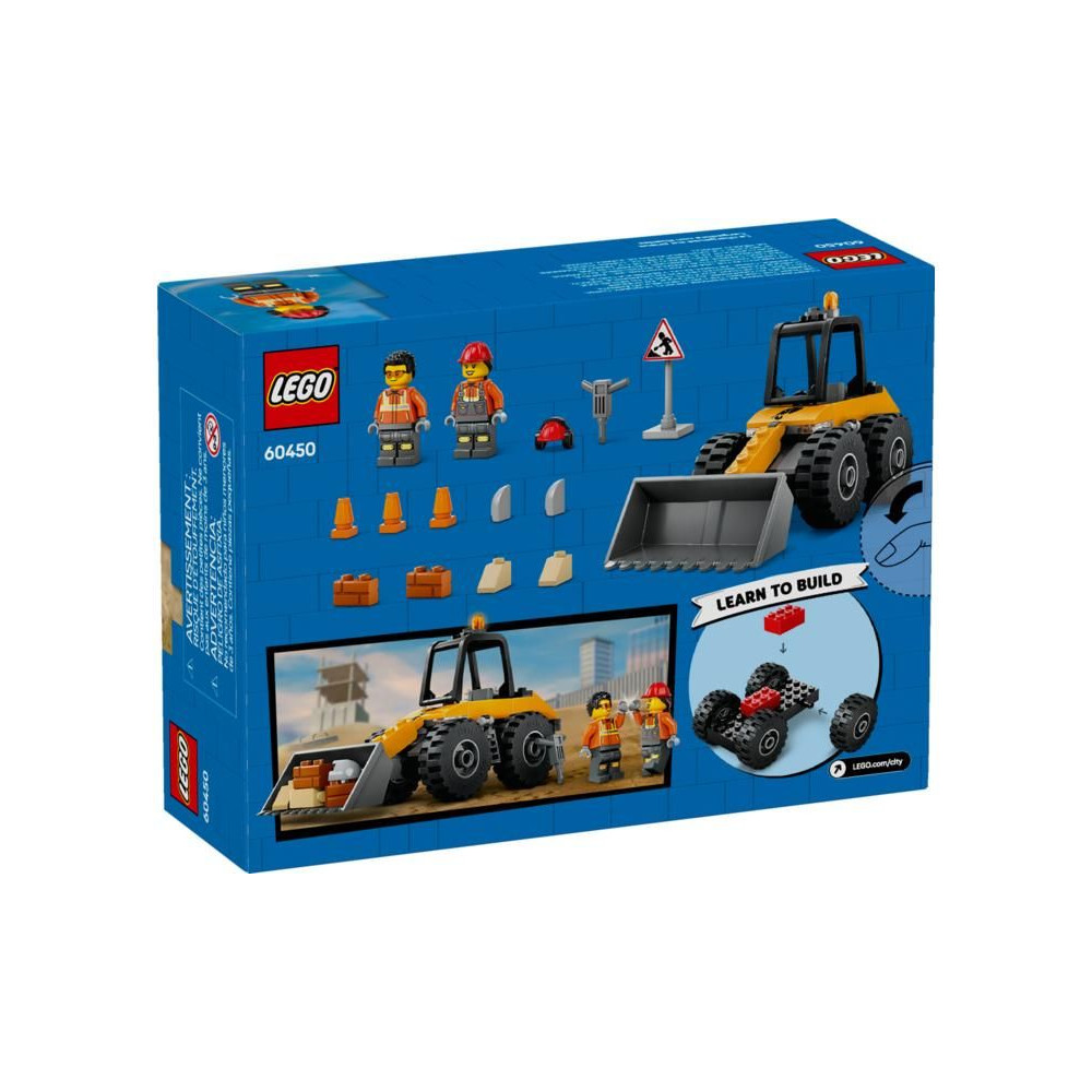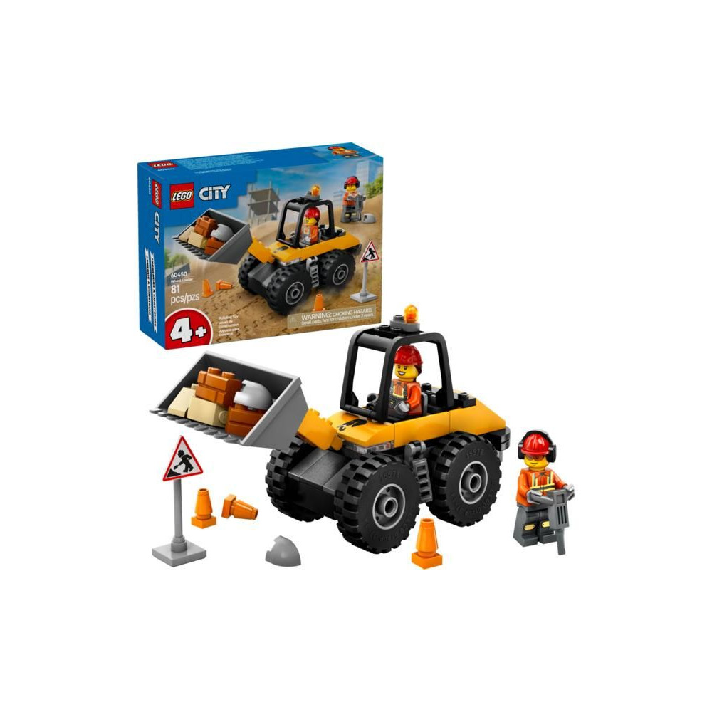 Vezesd be kicsidet az építkezések izgalmas világába a LEGO® City (60450) Sárga kerekes homlokrakodóval. A 4 éves vagy annál idősebb gyermekek számára készült kotrógép modell nagyméretű ásóval és robusztus gumiabroncsokkal rendelkezik az egyenetlen terep leküzdéséhez. Van egy közlekedési tábla, közlekedési bóják és egy légkalapács is. Tartalmaz egy sofőr és egy munkás minifigurát a kreatív játékhoz és a történetmeséléshez.