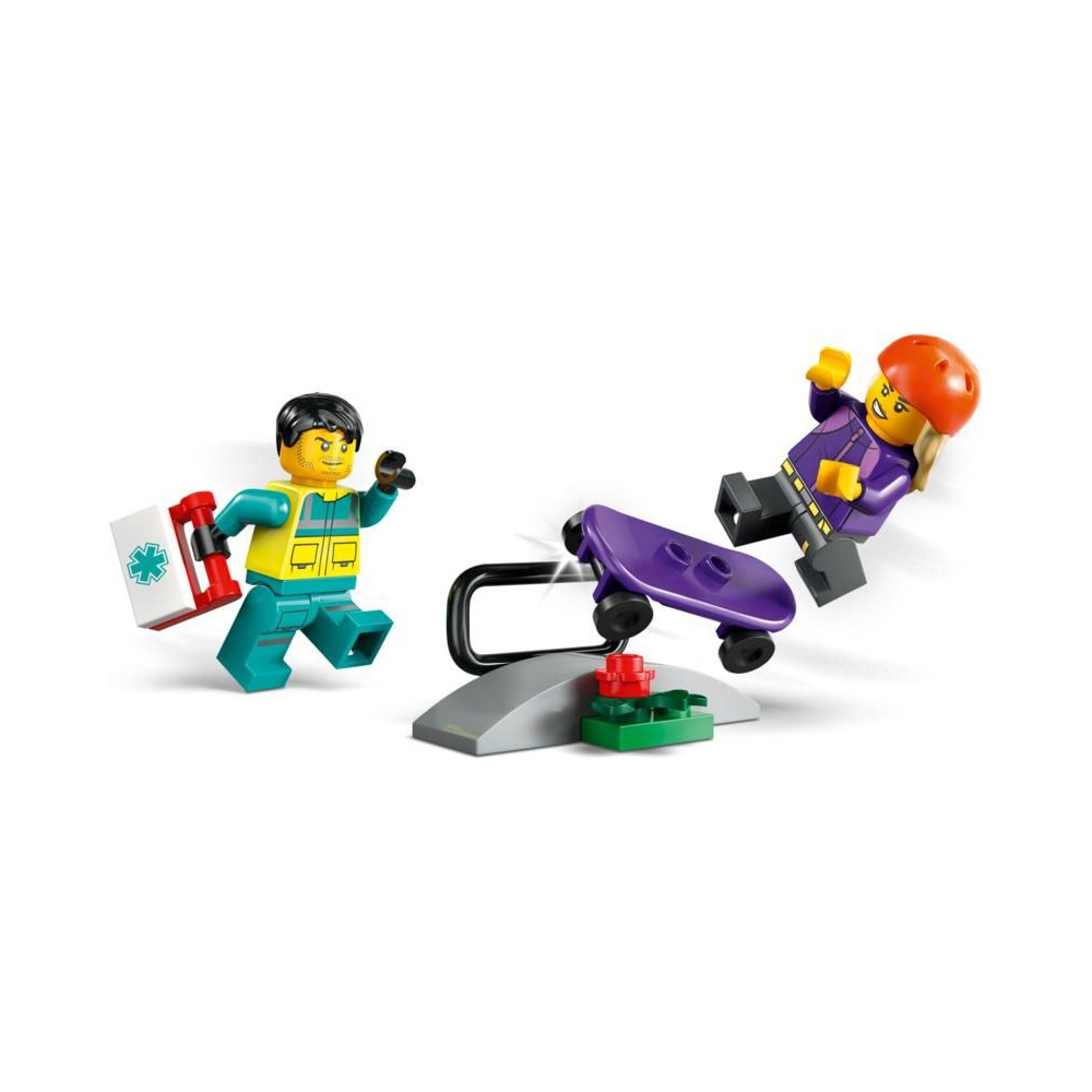 - Mit találsz a dobozban? – Minden, amire a gyerekeknek szükségük van egy mentőautó, gördeszka rámpa és egy mentős minifigura építéséhez