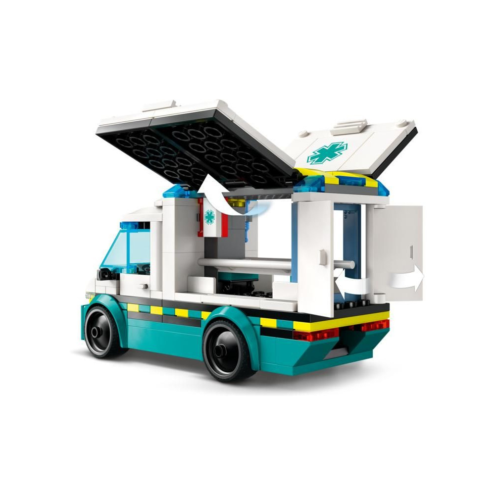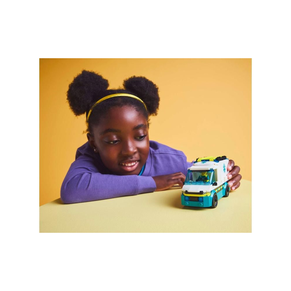 Az 5 éves vagy annál idősebb gyermekek akciódús mentőakciókban vehetnek részt a LEGO® City Mentőautó építőkészlettel. A kis mentősök leengedik a paneleket és kinyitják az ajtókat, hogy hozzáférjenek az orvosi berendezésekhez.
