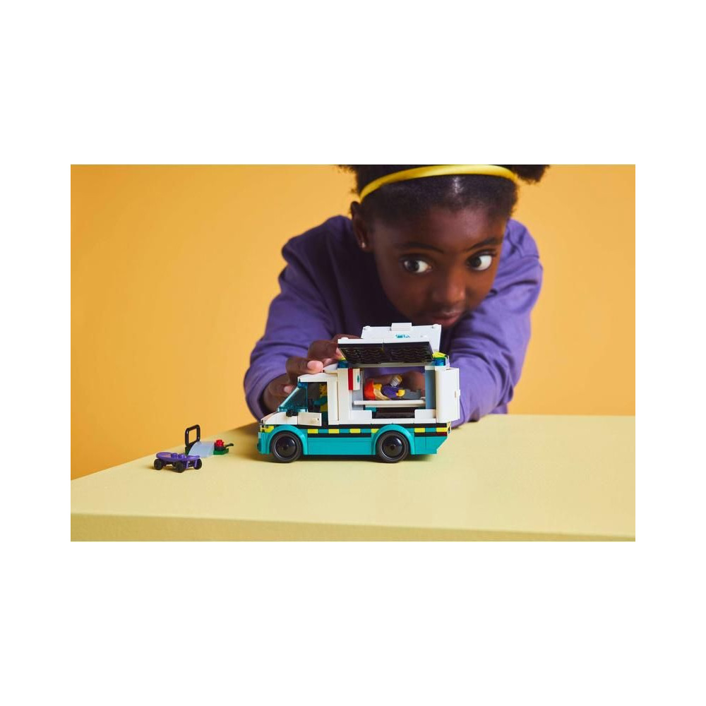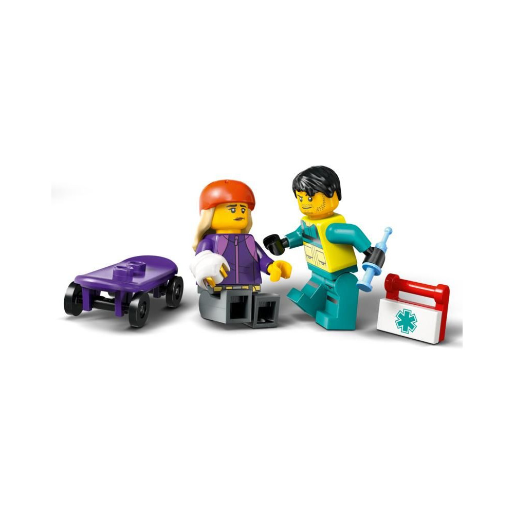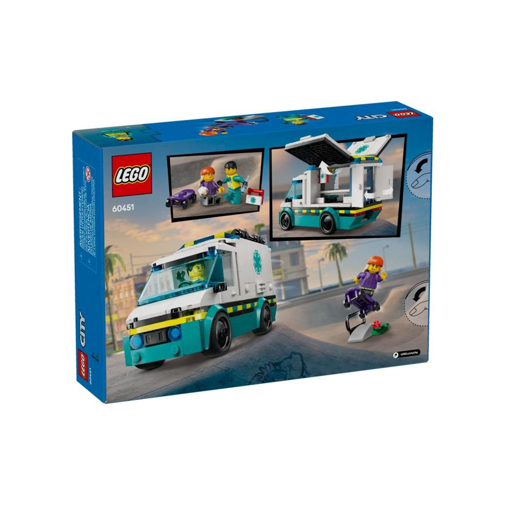 Az 5 éves vagy annál idősebb gyermekek akciódús mentőakciókban vehetnek részt a LEGO® City (60451) Mentőautó építőkészlettel. A kis mentősök lehajtják az oldalsó paneleket és kinyitják a hátsó ajtót, hogy könnyen hozzáférjenek a hordágyakhoz és az orvosi felszerelésekhez, beleértve a fecskendőt, a kötést és az elsősegélycsomagot. A készlet tartalmaz egy gördeszkát és gördeszka rámpát, valamint egy gördeszkás és egy mentő minifiguráját a szórakoztató játékhoz és a történetmeséléshez.