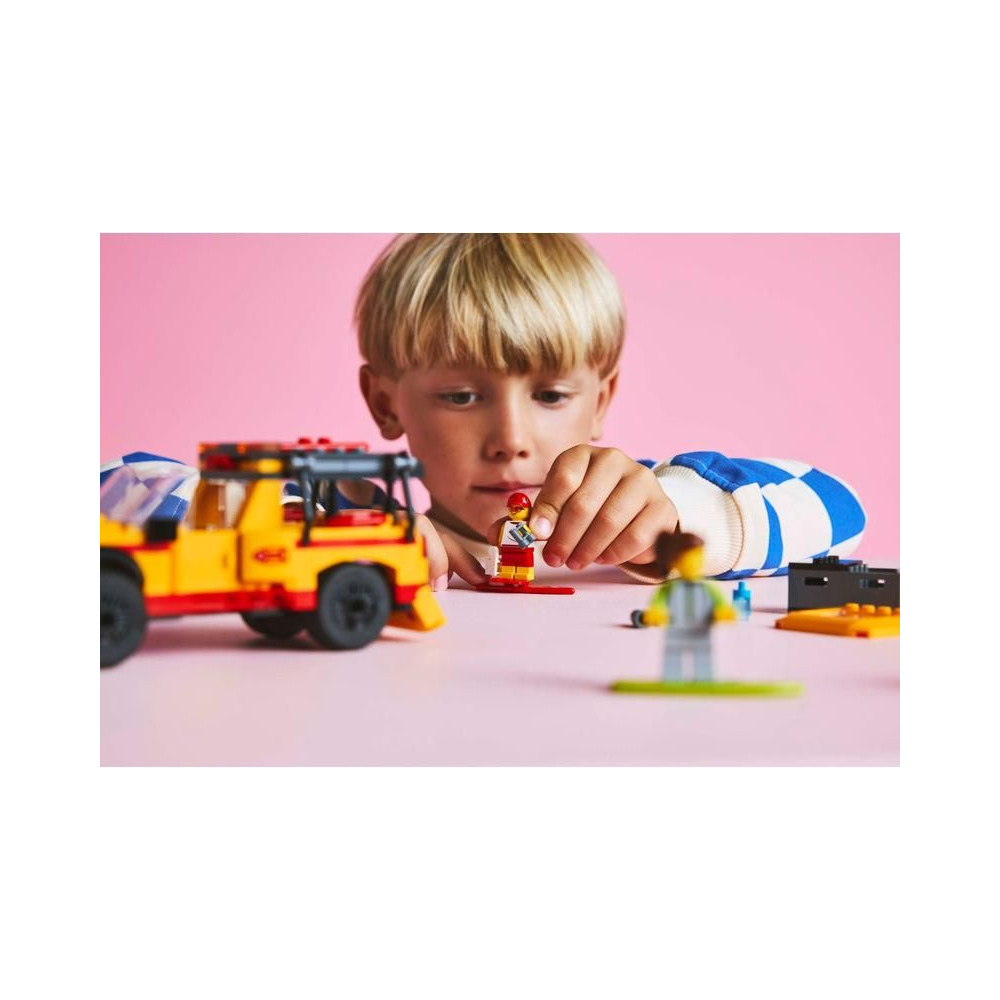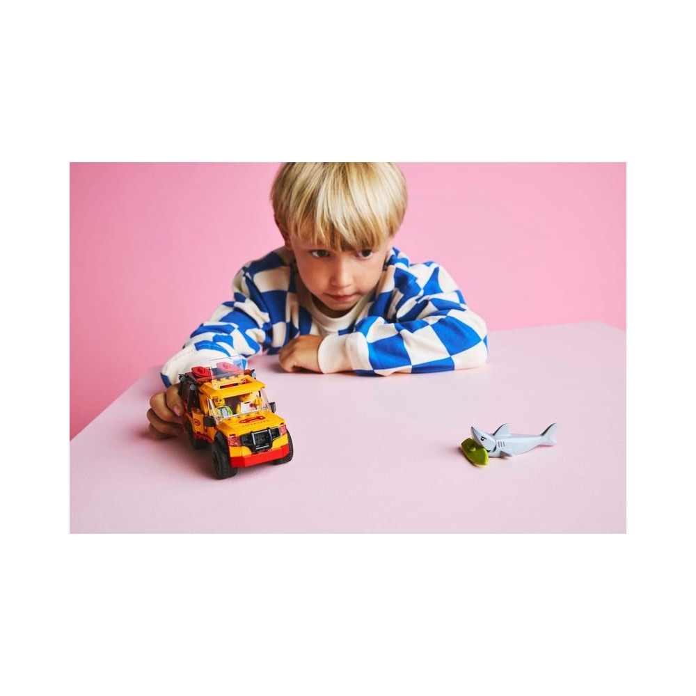 A gyerekek elmerülhetnek az akciódús tengerparti kalandokban a LEGO® City Vízimentő mentőautó építőkészlettel, amely 6 éves vagy annál idősebb fiúknak és lányoknak készült.