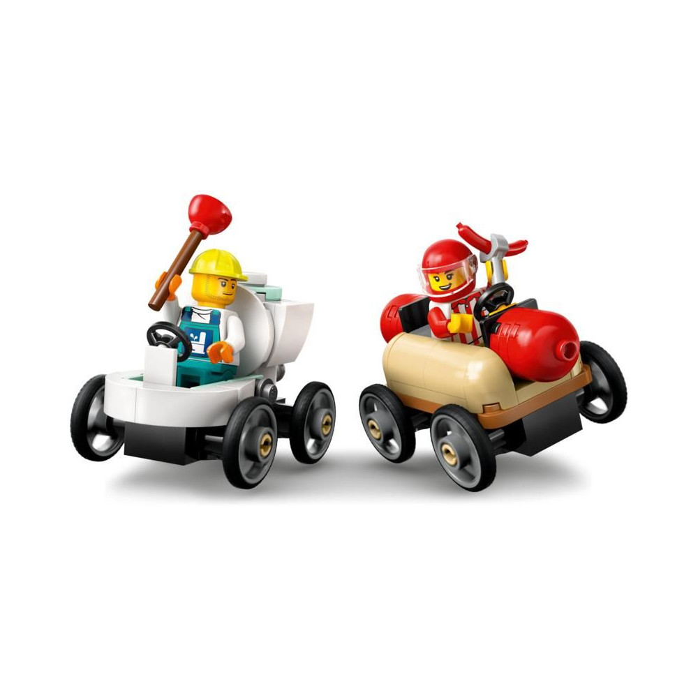 - Mit találsz a dobozban? – Minden, amire a gyerekeknek szükségük van egy járműrámpa, egy hot dogos és egy WC-s miniautó, valamint 4 minifigura építéséhez, köztük egy hot dogos sofőr és egy vízvezeték-szerelő sofőr