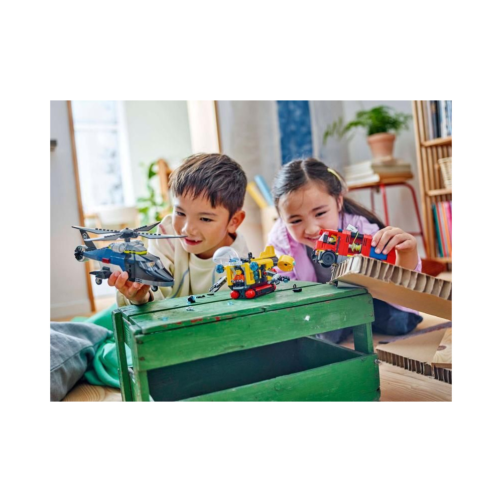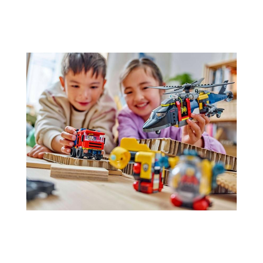 - Tűzoltóautó, helikopter és tengeralattjáró építőkészletek – Élvezd a háromszoros izgalmat a LEGO® City Remix: Helikopter, tűzoltóautó és tengeralattjáró építőkészlettel, amely 7 éves és annál idősebb gyermekek számára készült, akik imádnak építeni és alkotni.