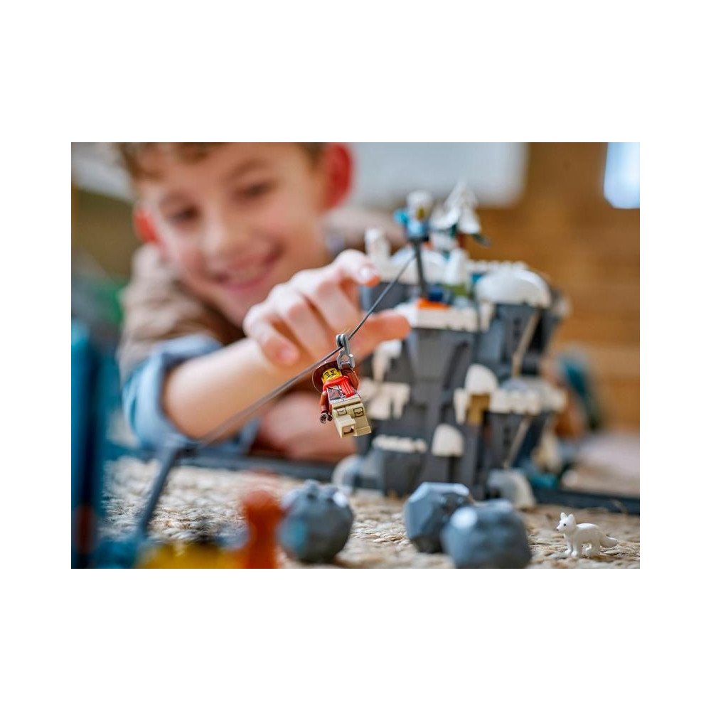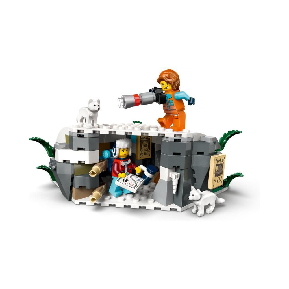 - Jellemzők és funkciók – A gyerekek átutazhatnak a hegyi alagúton a vonattal, aktiválhatják a sziklaesés funkciót, és leküldhetik a minifigurákat a kötélpályán, amely összeköti a hegyet a sarkvidéki bázissal.