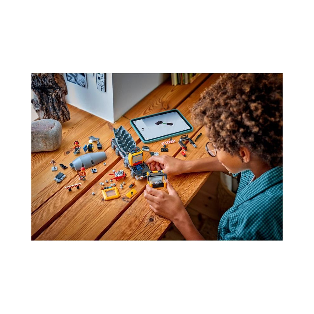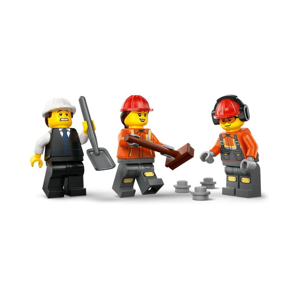 A kiegészítők között található egy kerék, egy közlekedési tábla és 2 akadály, valamint egy sofőr, egy építőmunkás és egy építész minifigura az élő játékhoz. Ez a LEGO City építőipari jármű modell nagyszerű születésnapi vagy karácsonyi ajándék 7 éves vagy annál idősebb fiúknak és lányoknak, akik imádják az építőipari gépeket.