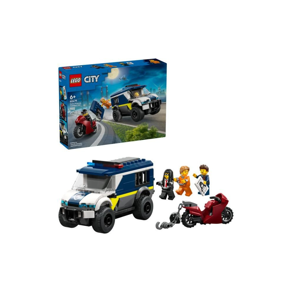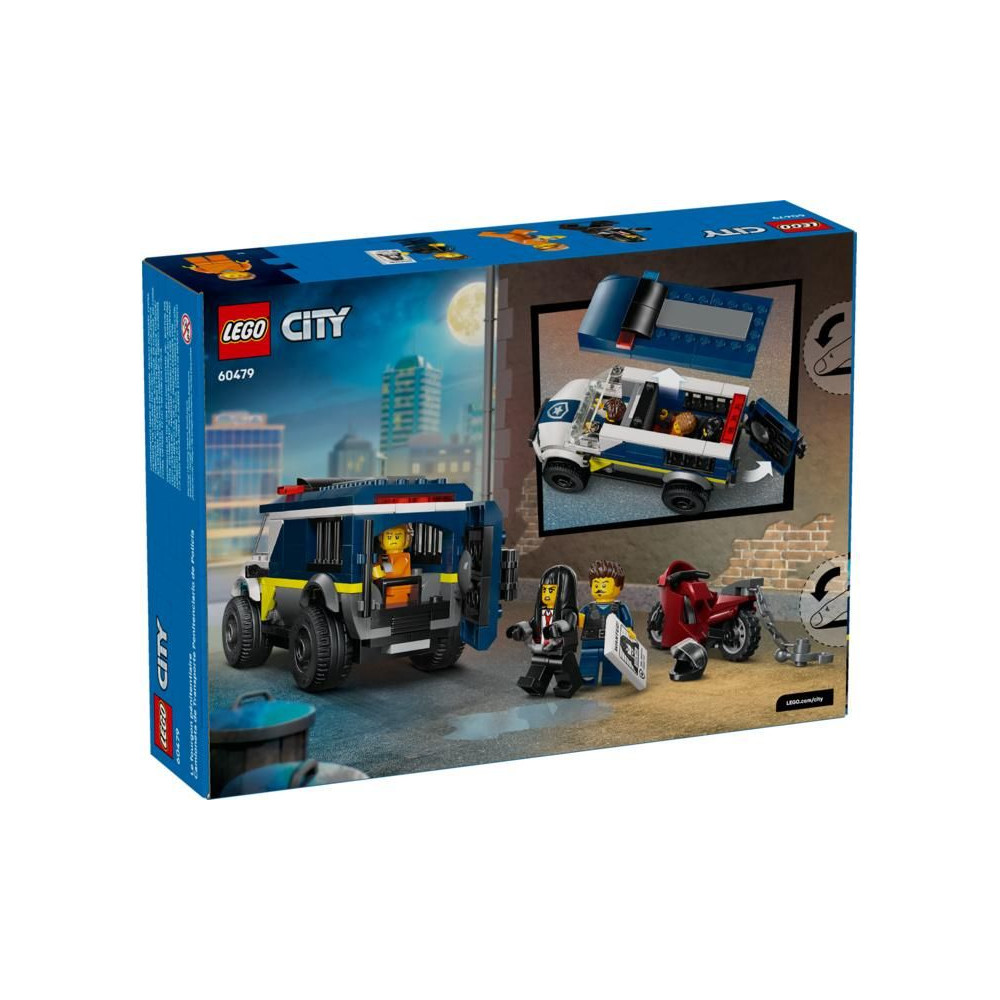 Készülj fel az izgalmas kalandokra a 6 éves vagy annál idősebb gyermekeknek szánt LEGO® City Rabszállító Rendőrségi furgon (60479) építőkészlettel! A rendőrautó modell kidolgozott vezetőfülkével és egy börtöncellával rendelkezik, amelyben 2 bűnöző fér el. A gyerekek egy lánccal és kampóval ellátott motorkerékpár formájú játékkal téphetik le a cella ajtaját. Csak adj hozzá egy rendőr minifigurát és 2 bűnöző minifigurát, és máris eljátszhatsz egy izgalmas börtönszökési jelenetet.
