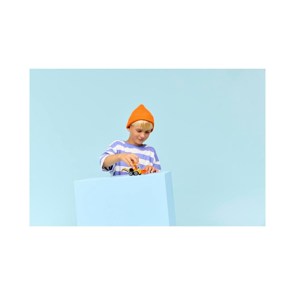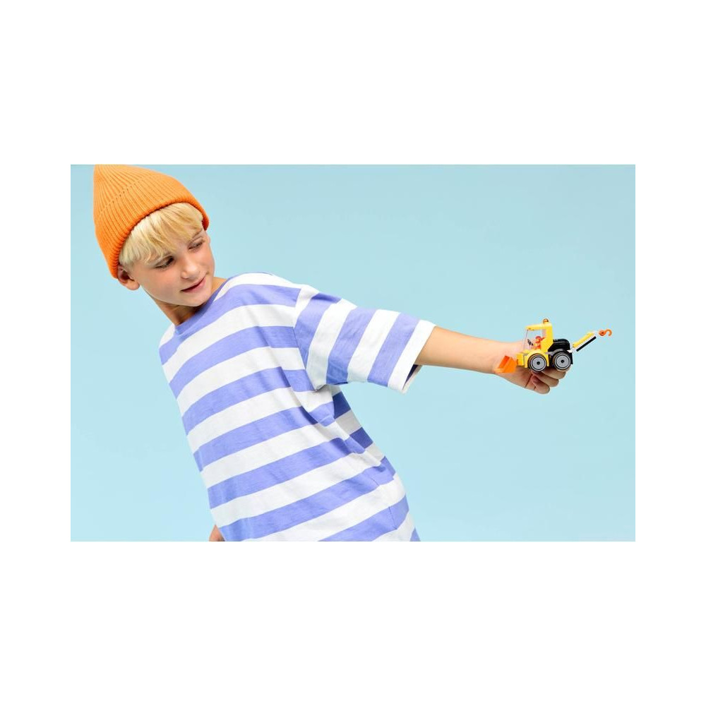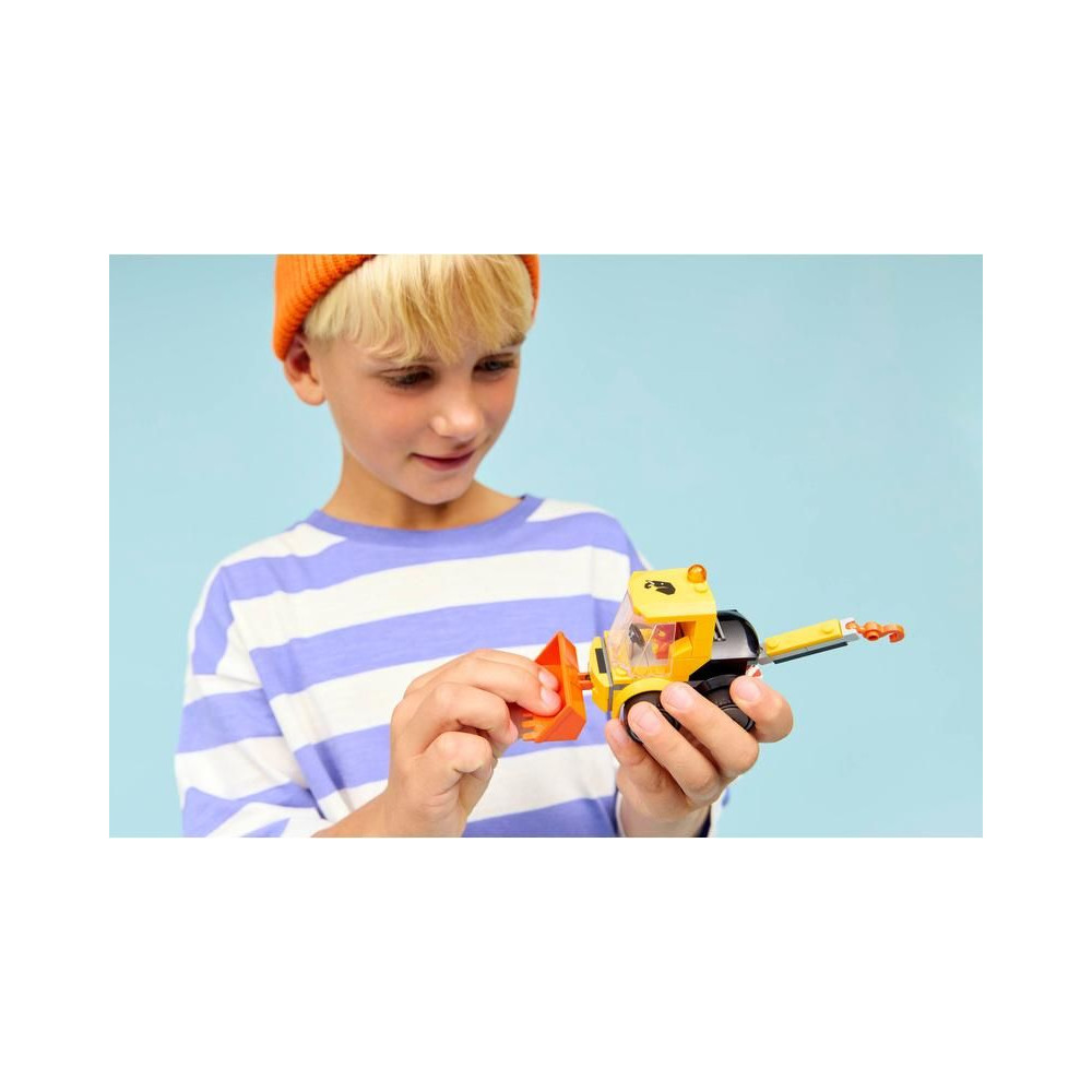 - FIATAL ÉPÍTŐMUNKÁS MINIFIGURA – A gyerekek elhelyezhetik a Fiatal Építőmunkás minifigurát a kabinban, és nagy kalandokra indulhatnak.