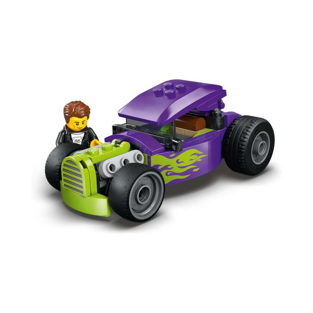 - HOT ROD VERSENY – Csatold be az öved, és indulj versenyre a LEGO® City Hot Rod autómodellel és sofőr minifigurával 5 éves vagy annál idősebb versenyautó-rajongók számára.