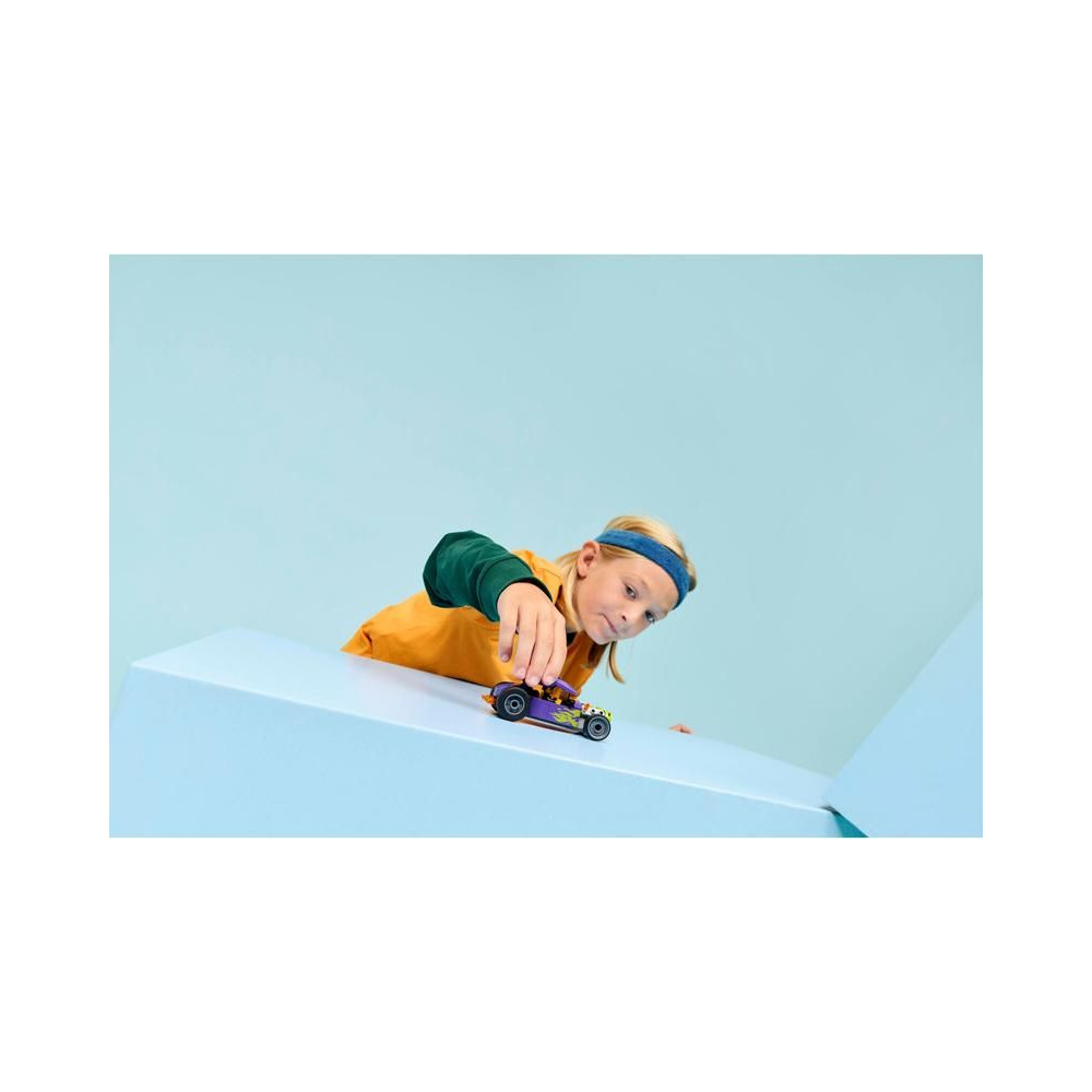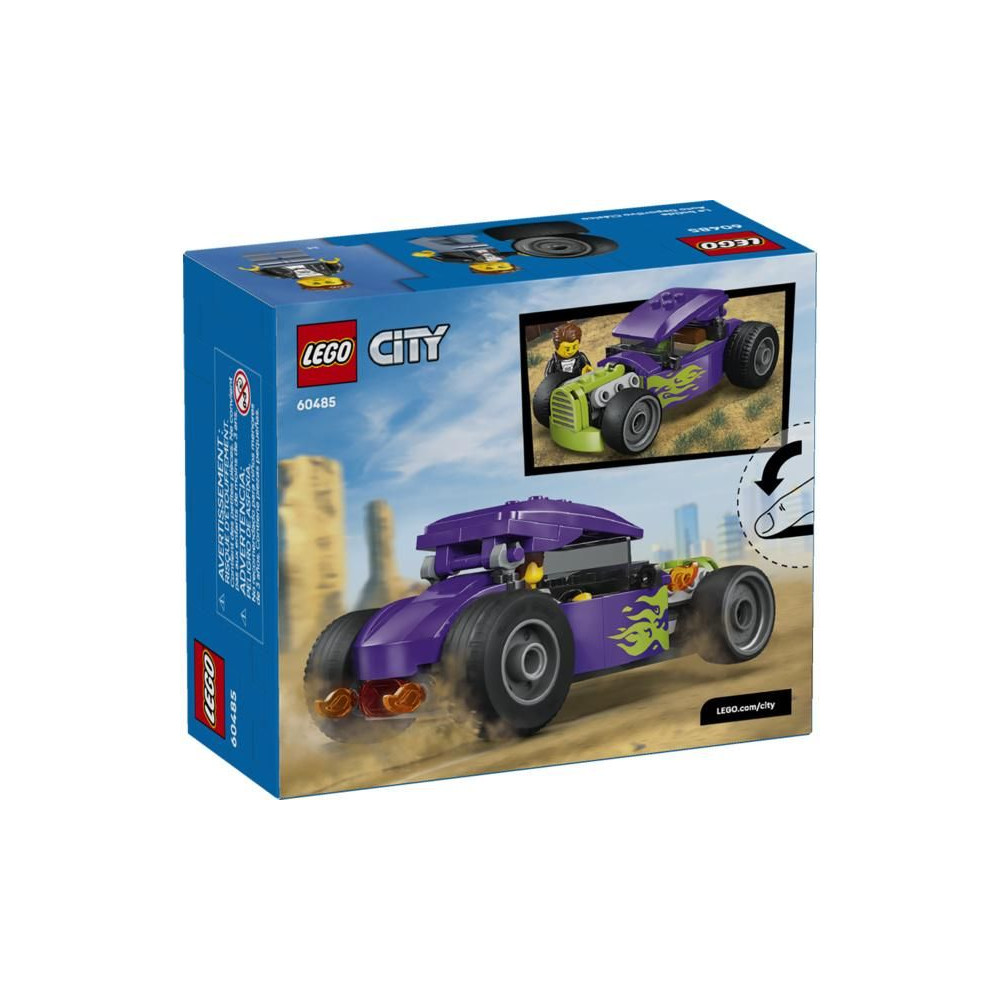 Az 5 éves kortól induló versenyautó-rajongók szupergyors versenyekre indulhatnak a LEGO® City Hot Rod autóval (60485). Ez az autókészlet kidolgozott versenyelemekkel fogja elkápráztatni a kis építőket, többek között hatalmas hátsó kerekekkel, felnyitható tetővel ellátott vezetőfülkével és neonzöld lángokkal díszített, vagány lila színösszeállítással. Csak add hozzá a sofőr minifiguráját, és máris indulhat a szupergyors utazás!