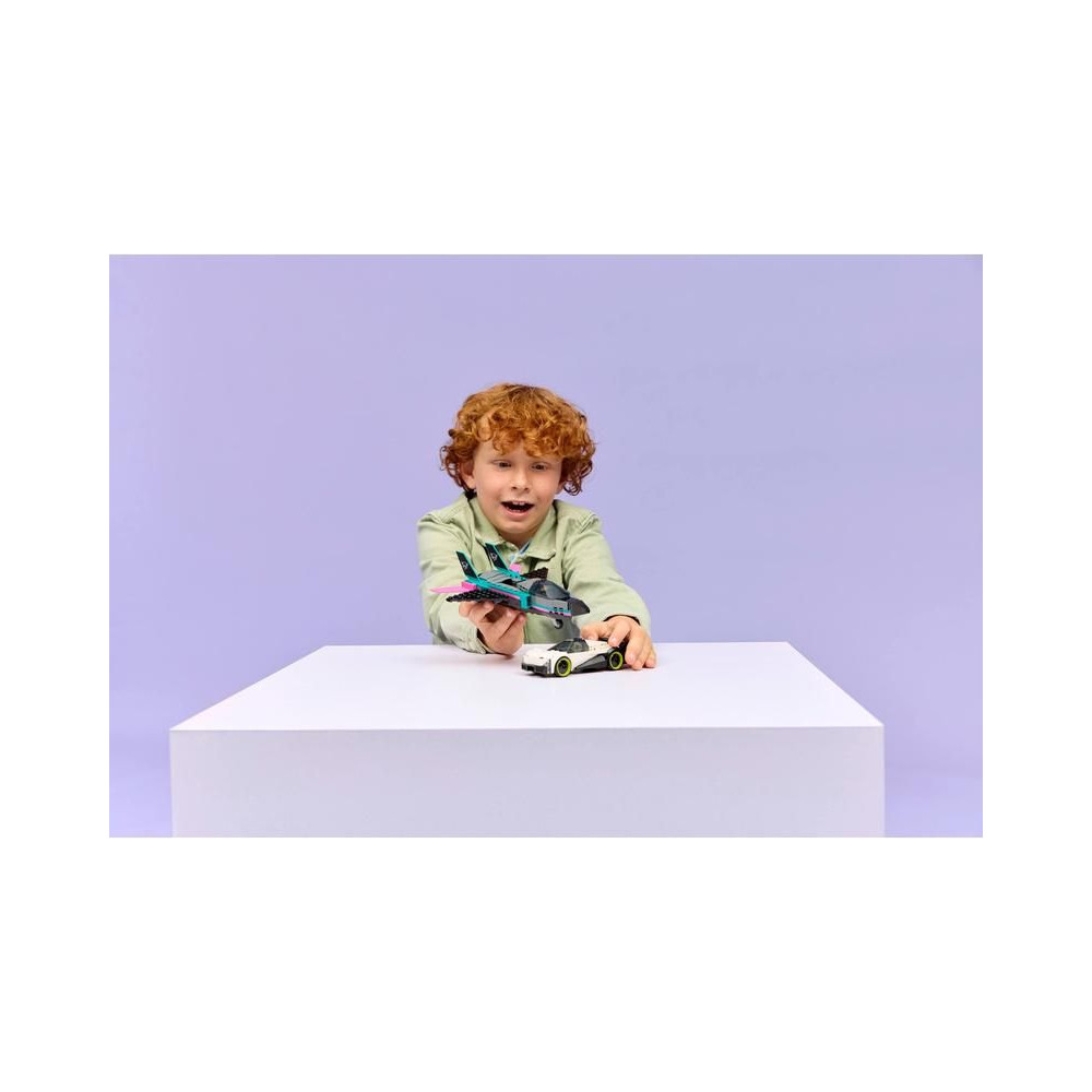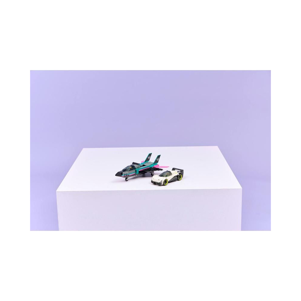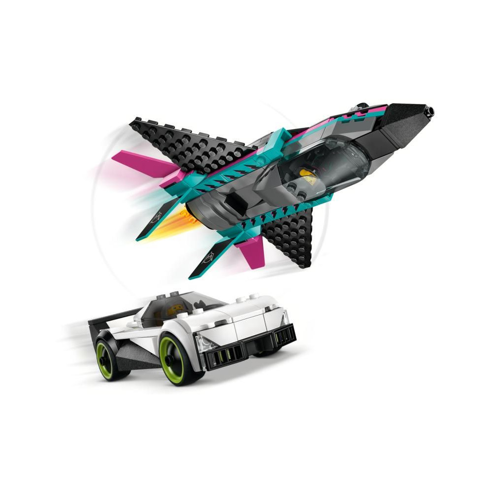 A LEGO® City Jet vs. az autó dupla készlet tartalmaz egy elegáns szuper sportautót és egy szuperszonikus repülőgépet, amelyekkel a kis építők órákon át élvezhetik a versenyzést.