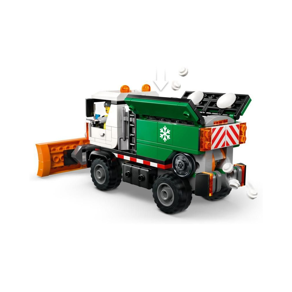 - A DOBOZ TARTALMA - Minden, amire a gyerekeknek szükségük van egy valósághű hóeke modell megépítéséhez gumiabroncsokkal, első hóekével és sószóró funkcióval, valamint egy sofőr minifigurával
