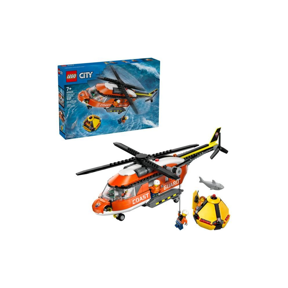 A LEGO® City Parti őrség helikoptere (60503) építőkészlet tele van hiteles részletekkel a mentőjárművek és a hősies történetek szerelmeseinek. A lenyűgöző piros helikopter modell forgó rotorokkal, tolóajtókkal, lehajtható hátsó rámpával, valamint kidolgozott pilótafülkével és törzzsel rendelkezik. A gyerekek a helikopter csörlőjével indíthatnak fel egy legénységi tagot. A modell egy mentőkapszulát is tartalmaz, amely kihajtható és beilleszthető. Adj hozzá egy pilótát, egy civilt, 2 parti őrt és egy cápát az órákig tartó fantáziadús játékhoz.