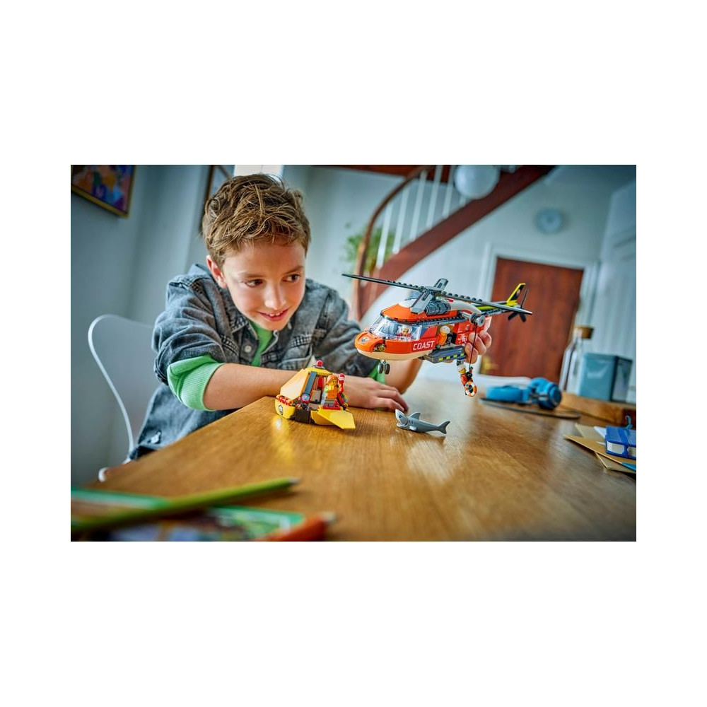 A LEGO® City parti őrség helikopter építőkészlete tele van hiteles részletekkel a mentőjárművek és a hősies történetek szerelmeseinek.