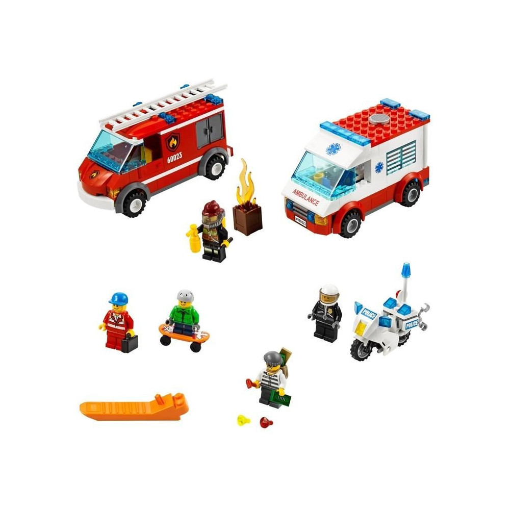 - Vytvorte nekonečné možnosti hry s mnohými inšpiratívnymi nápadmi, ktoré malí stavitelia ocenia počas záchrany rôznych situácií! Obsahuje 5 minifigúrok s doplnkami: zlodeja, policajta, hasičov, záchranárov a skejťáka.