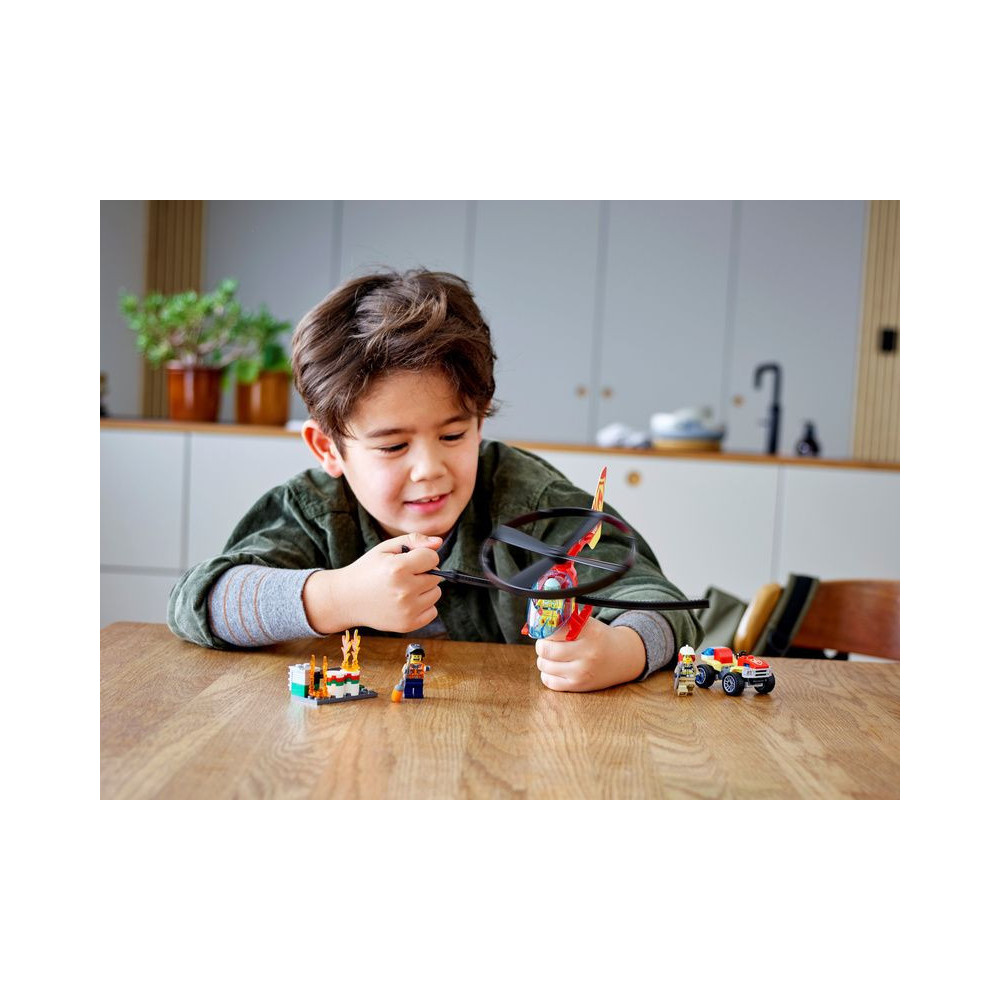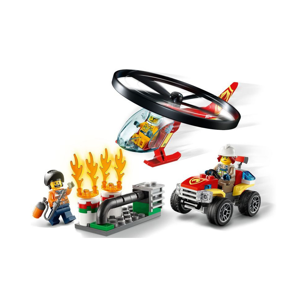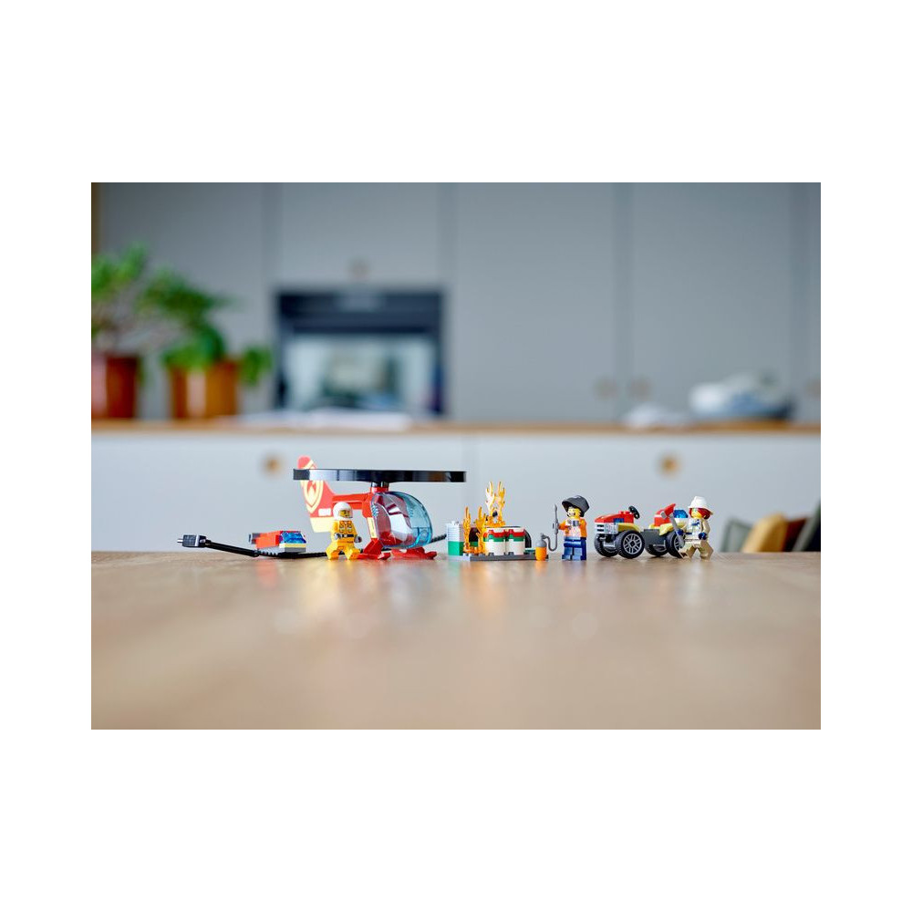 - Akciódús szórakozás vár! Egy menő, repülő feszítővágó helikopter, egy mentő quadkopter és egy égő cső, valamint 3 minifigura, köztük egy kiváló tűzoltópilóta, egy huncut munkás és Freya McCloud tűzoltóparancsnok a LEGO® City TV-sorozatból.