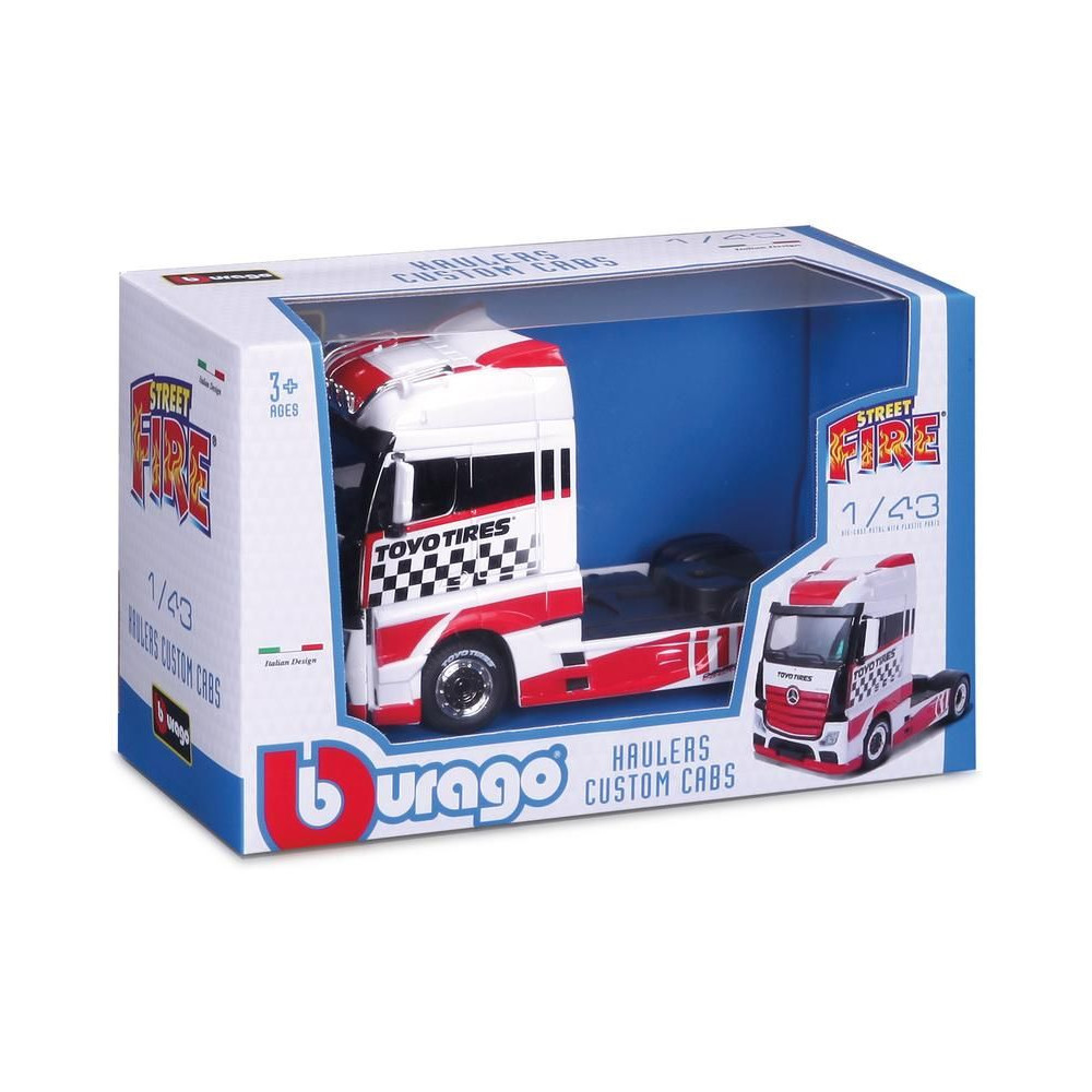 Bburago 18-32202 - Mercedes-Benz Actros Gigaspace fémmodell 1:43 méretarányban. Részletes kidolgozású fém és műanyag alkatrészekből készült. Az Actros körülbelül 14,5 cm méretű, és egy utánfutót is lehet rácsatlakoztatni. A modell színe ezüst.
