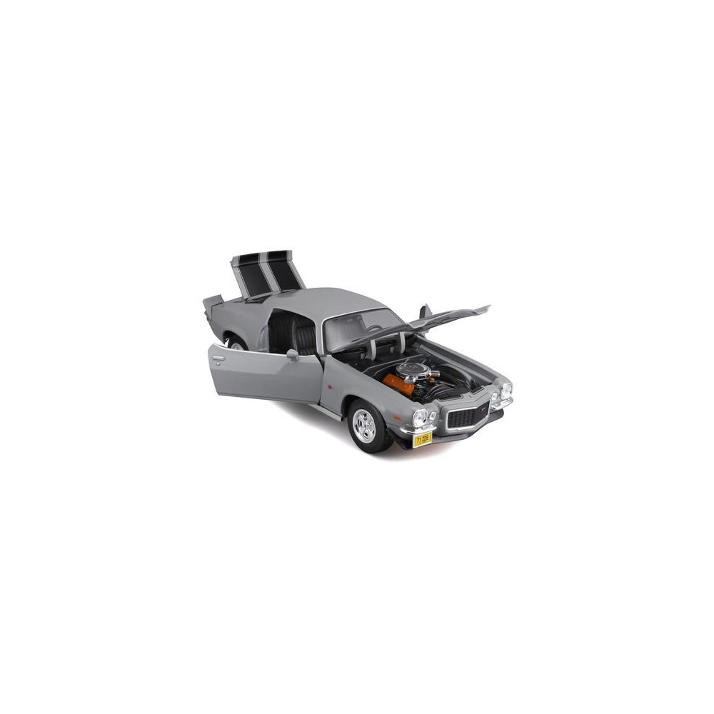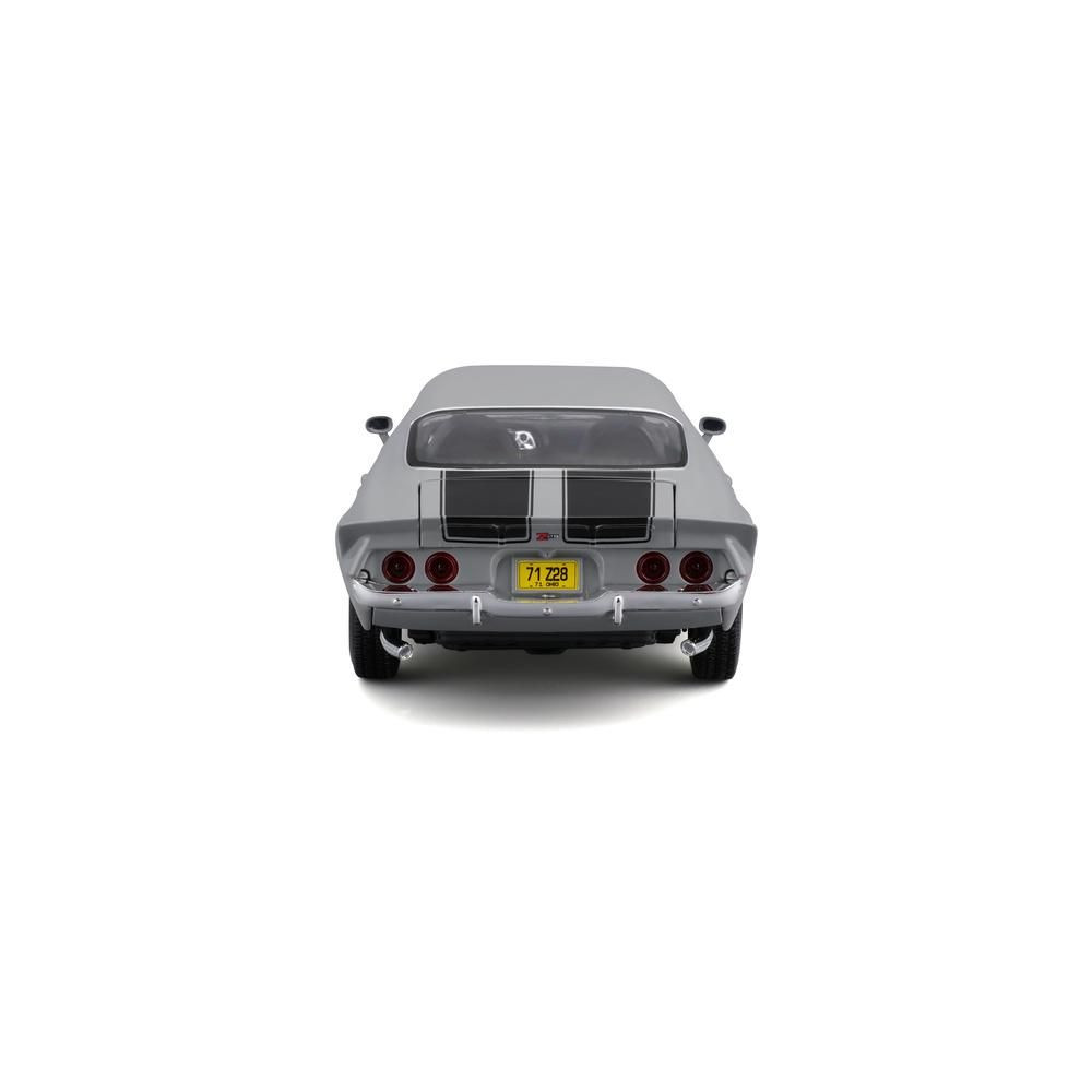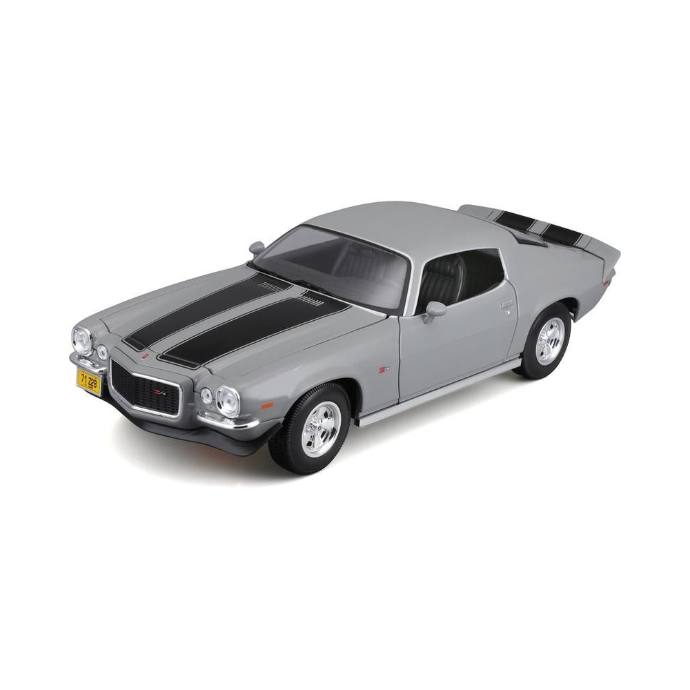 Az 1:18-as Maisto 31131 Chevrolet Camaro 1971 fém autómodell nem csak gyűjtőknek való. A modell részletes kivitelben, műanyag alapon áll. A modell színe szürke.