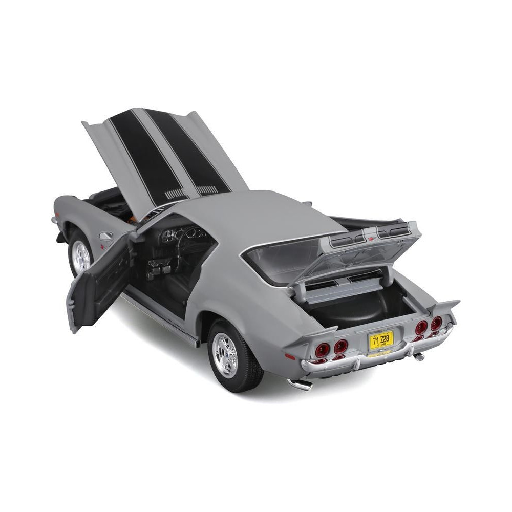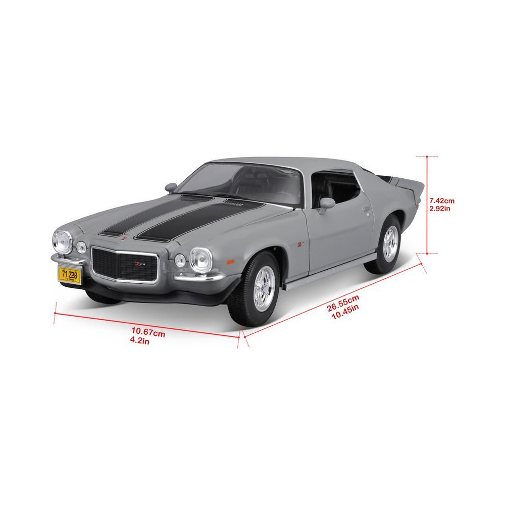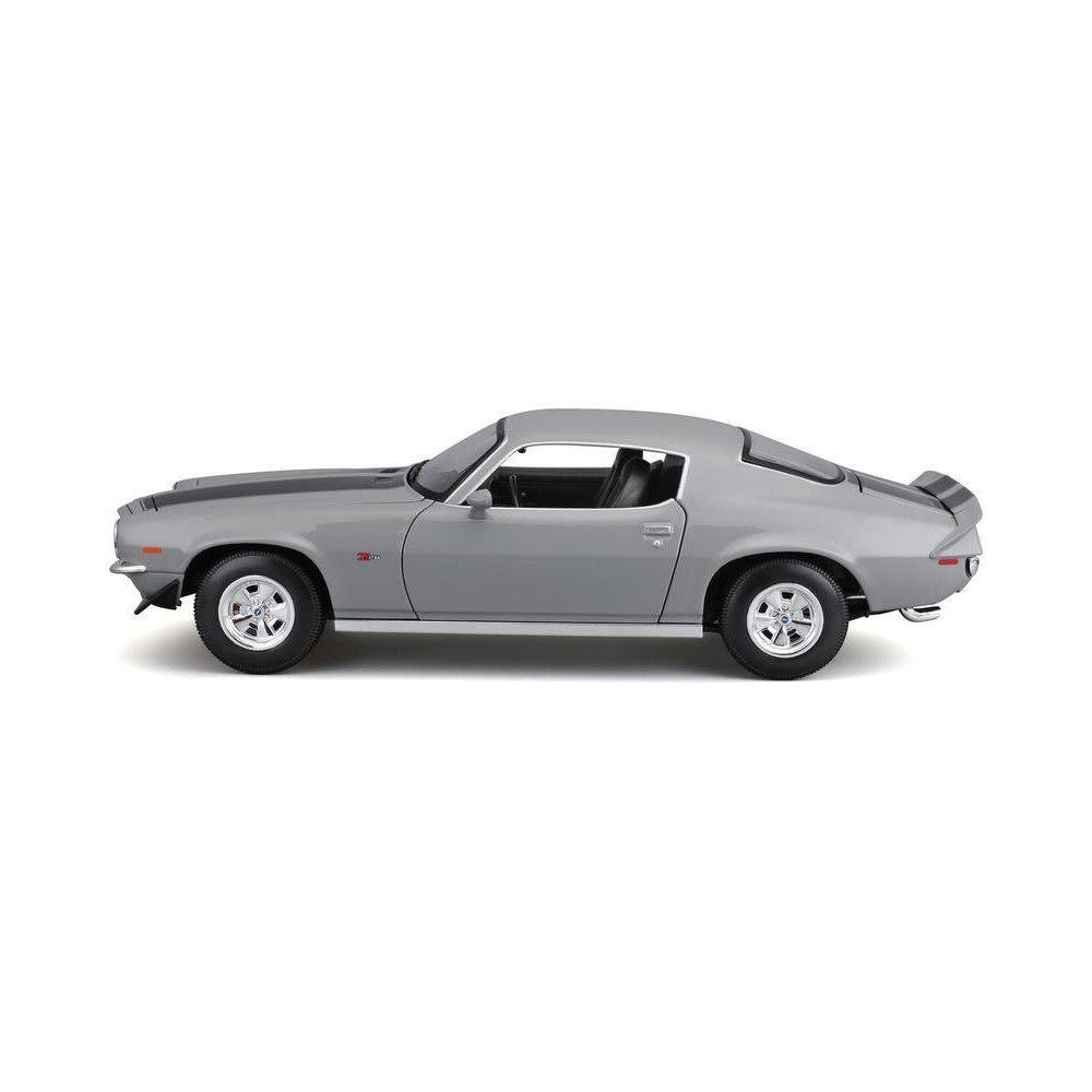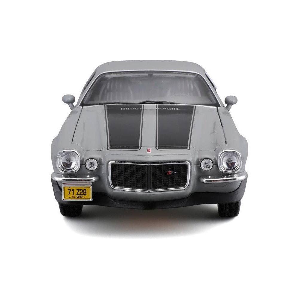 Az 1:18-as Maisto 31131 Chevrolet Camaro 1971 fém autómodell nem csak gyűjtőknek való. A modell részletes kivitelben, műanyag alapon áll. A modell színe szürke.