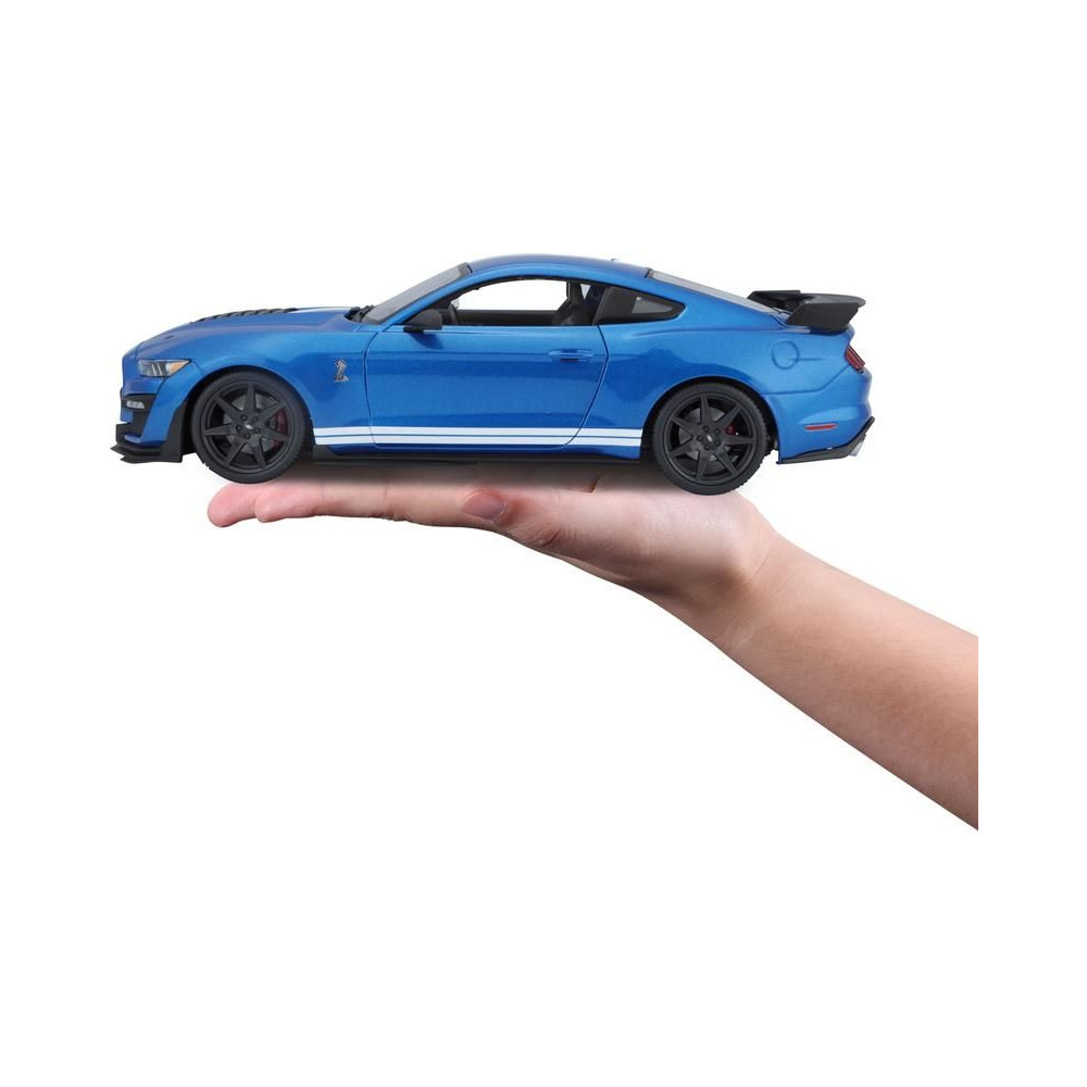 Fém autómodell 1:18 Maisto 31388 Ford Shelby GT500 2020 nem csak gyűjtőknek. A modell részletes kivitelben, műanyag alapon található. A modell színe metálkék.