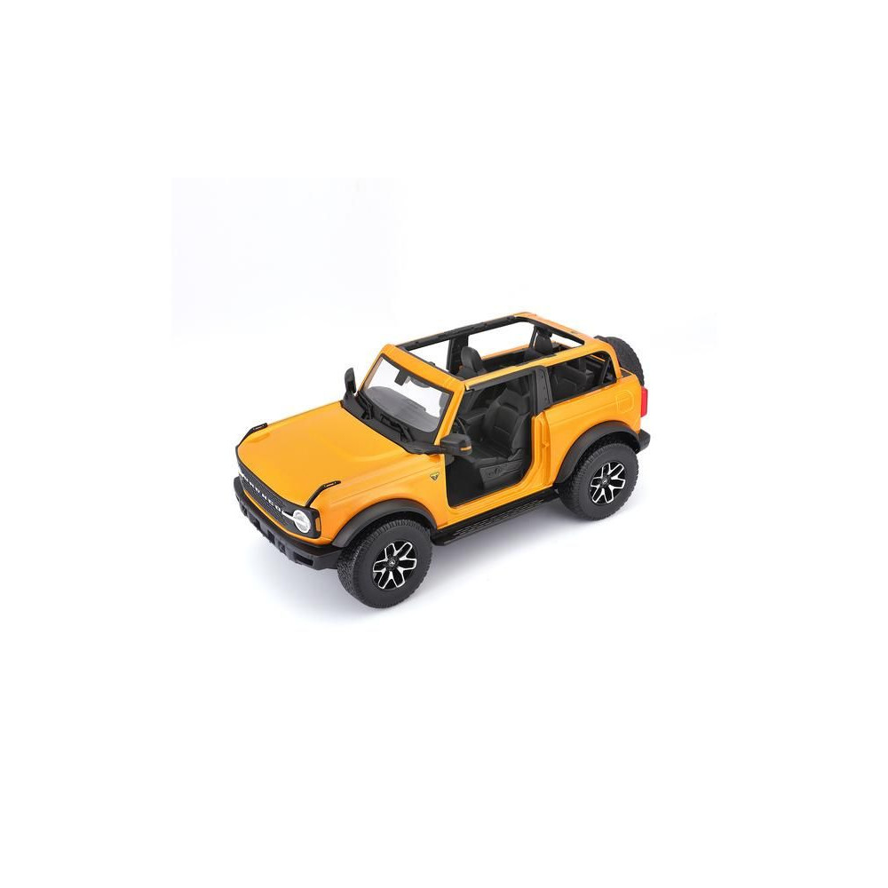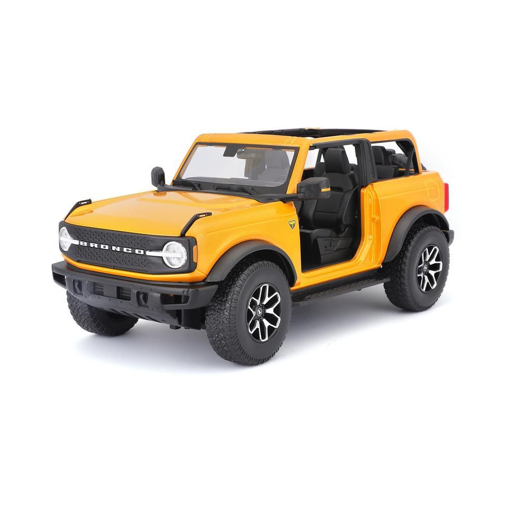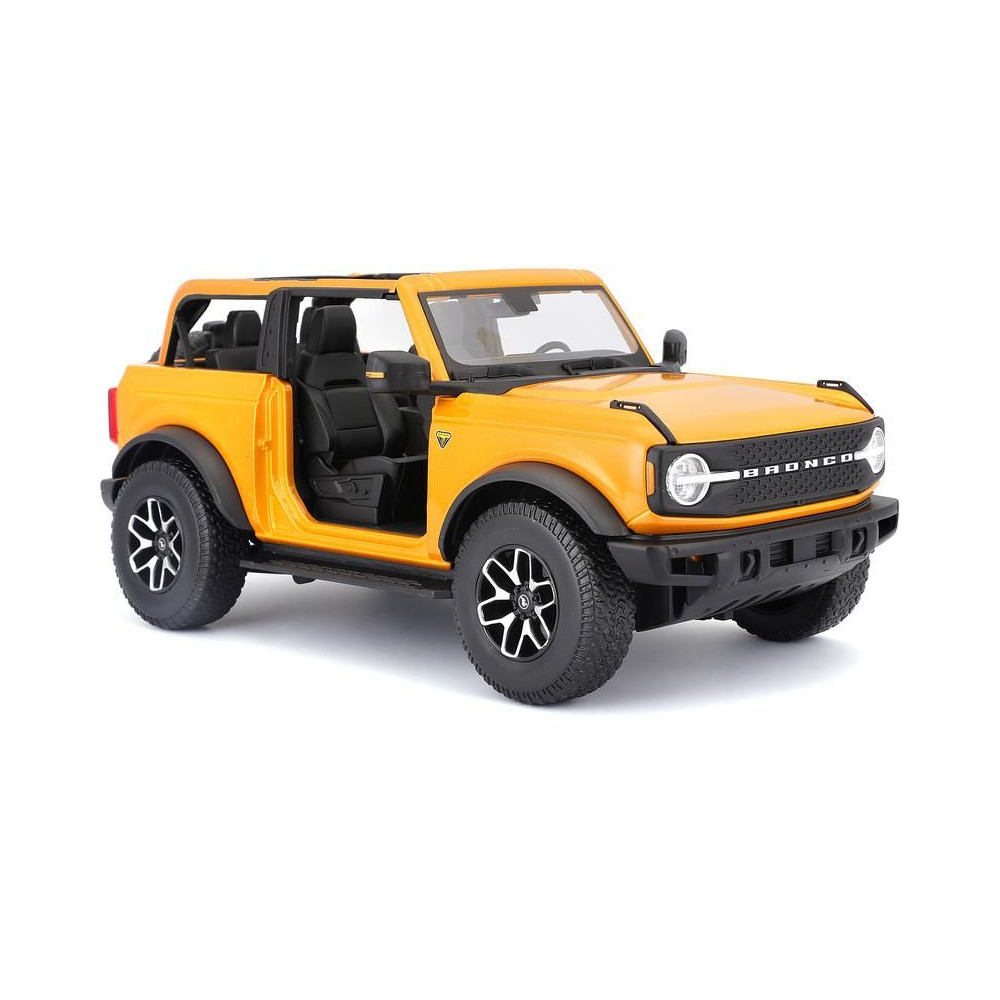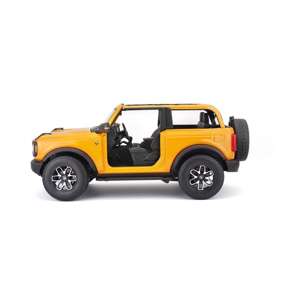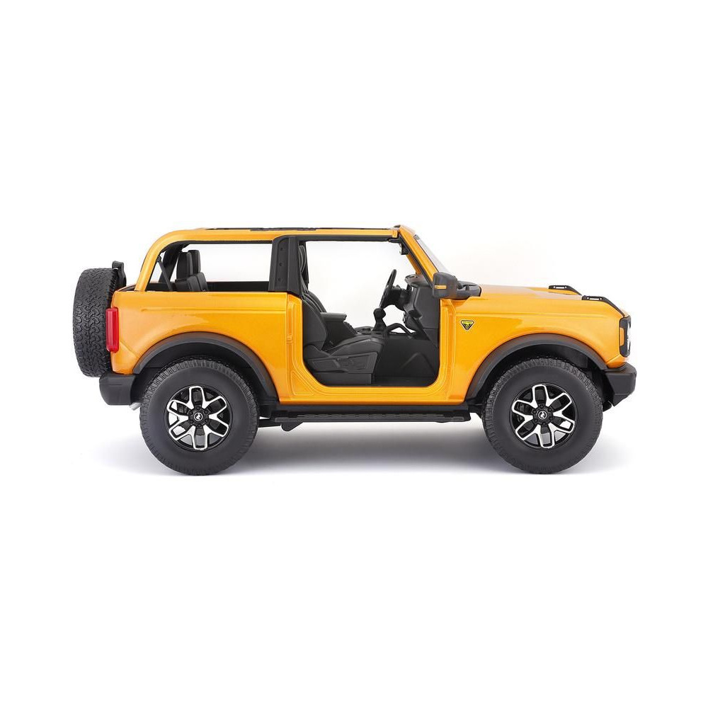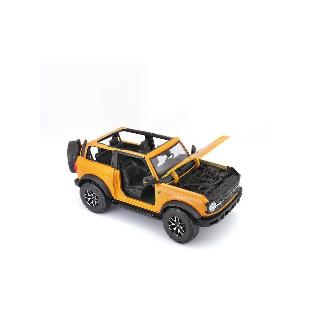 Fém autómodell 1:18 Maisto 31457 Ford Bronco Badlands 2021notgyűjtőknek. A modell részletes kivitelben, műanyag alapon található. A modell színe narancssárga.