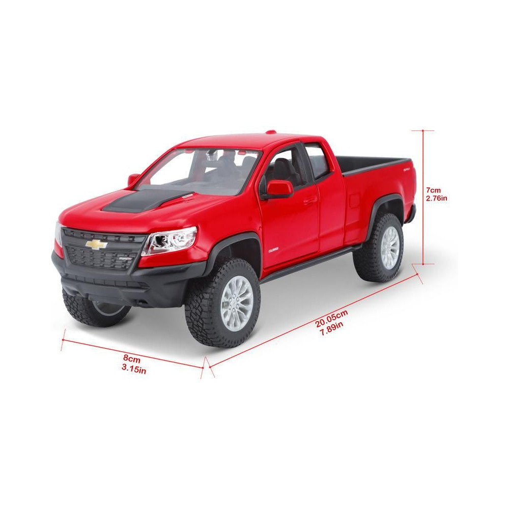 Az 1:27 Maisto 31517 Chevrolet Colorado ZR2 fém autómodell nem csak gyűjtőknek való. A modell részletes kivitelben készült és nyitható ajtókkal rendelkezik. A modell színe piros.
