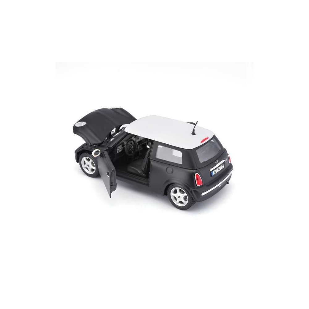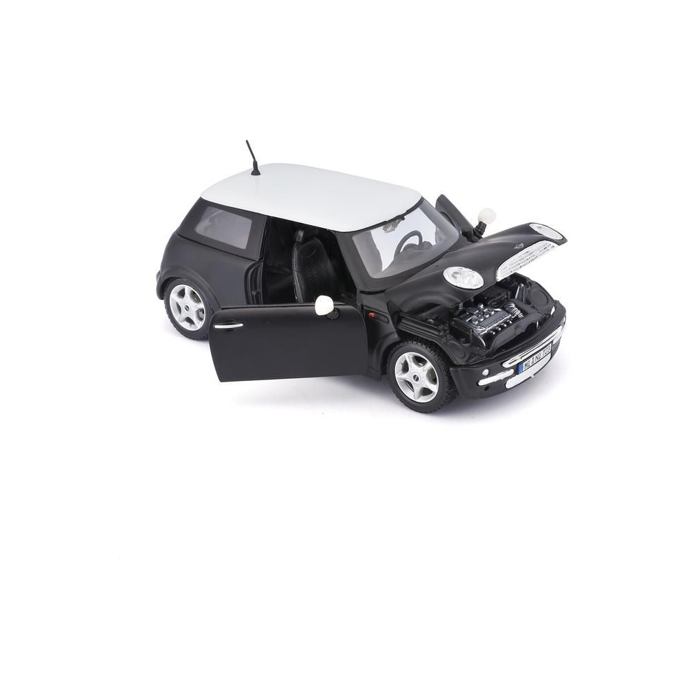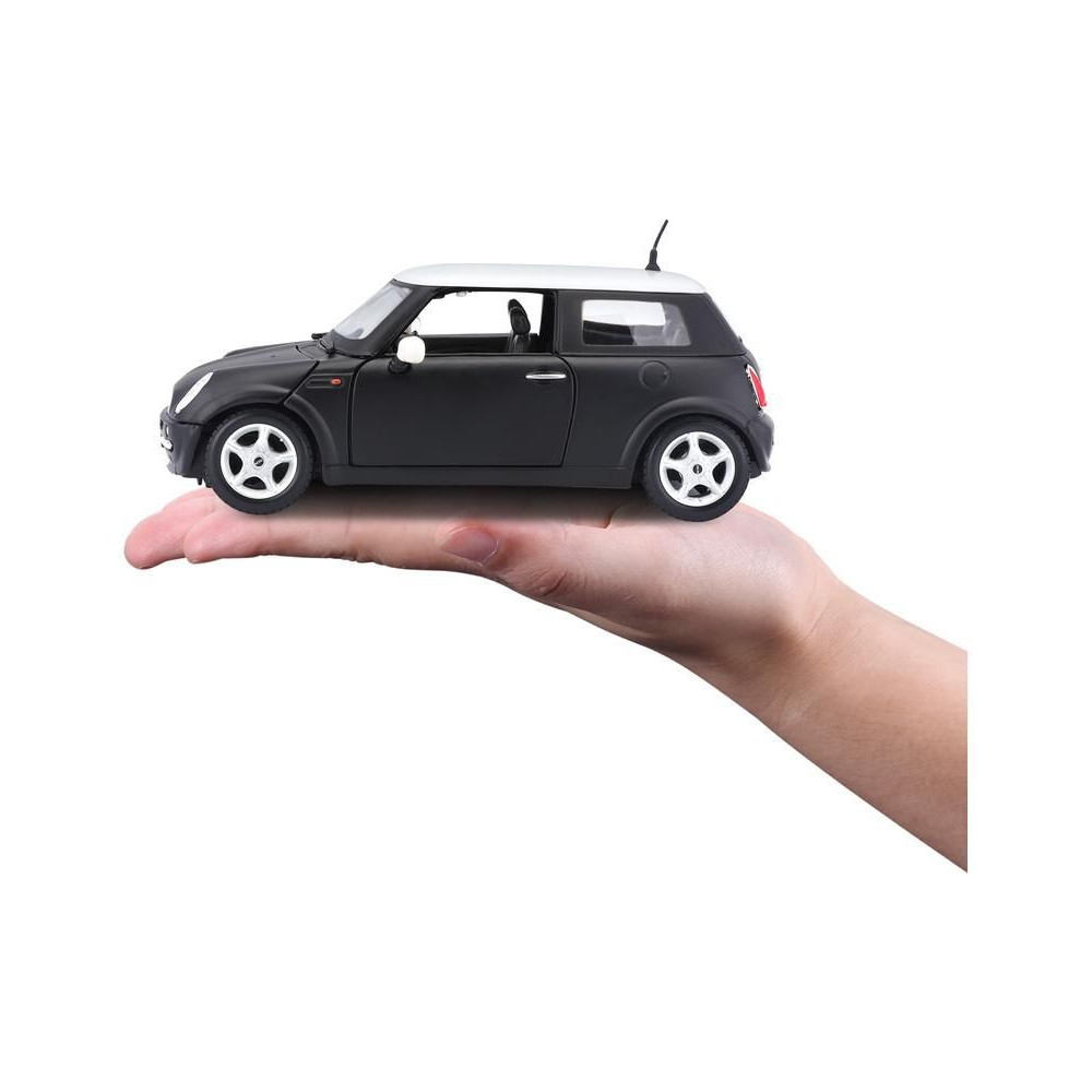 Az 1:24 Maisto 31219 Mini Cooper fém autómodell nem csak gyűjtőknek való. A modell részletes kivitelben készült és nyitható ajtókkal rendelkezik. A modell színe fekete metálfényű, mérete pedig körülbelül 17 cm.