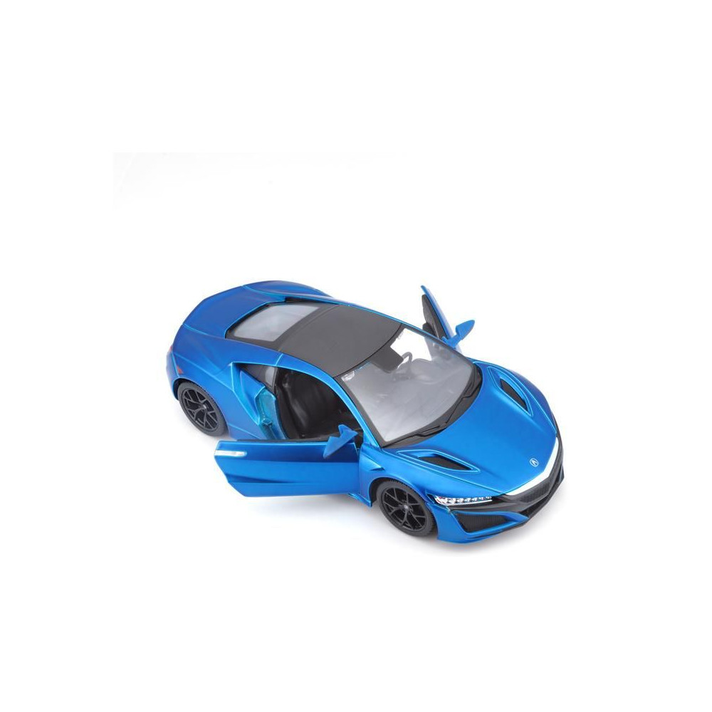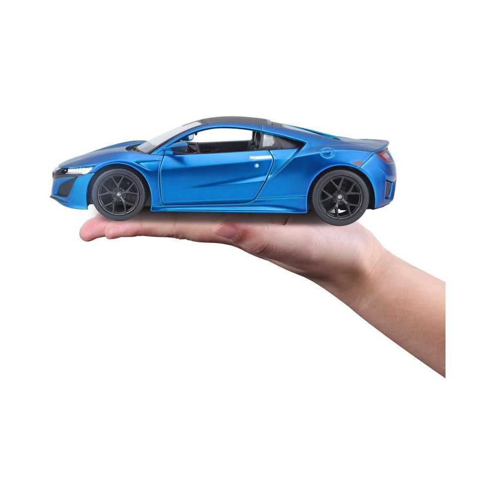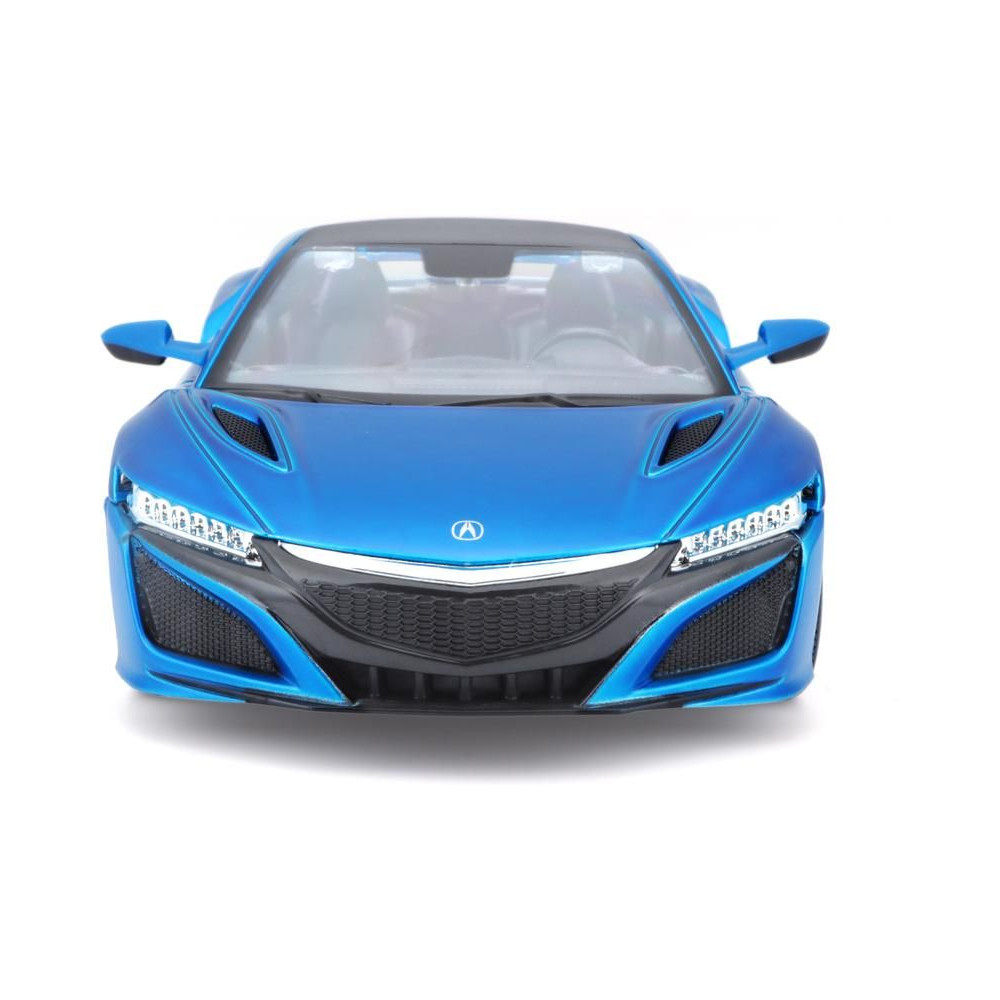 Fém autómodell 1:24 Maisto 31234 Acura NSX 2017 nem csak gyűjtőknek. A modell részletes kivitelben készült és nyitható ajtókkal rendelkezik. A modell színe metálkék, mérete pedig körülbelül 19 cm.