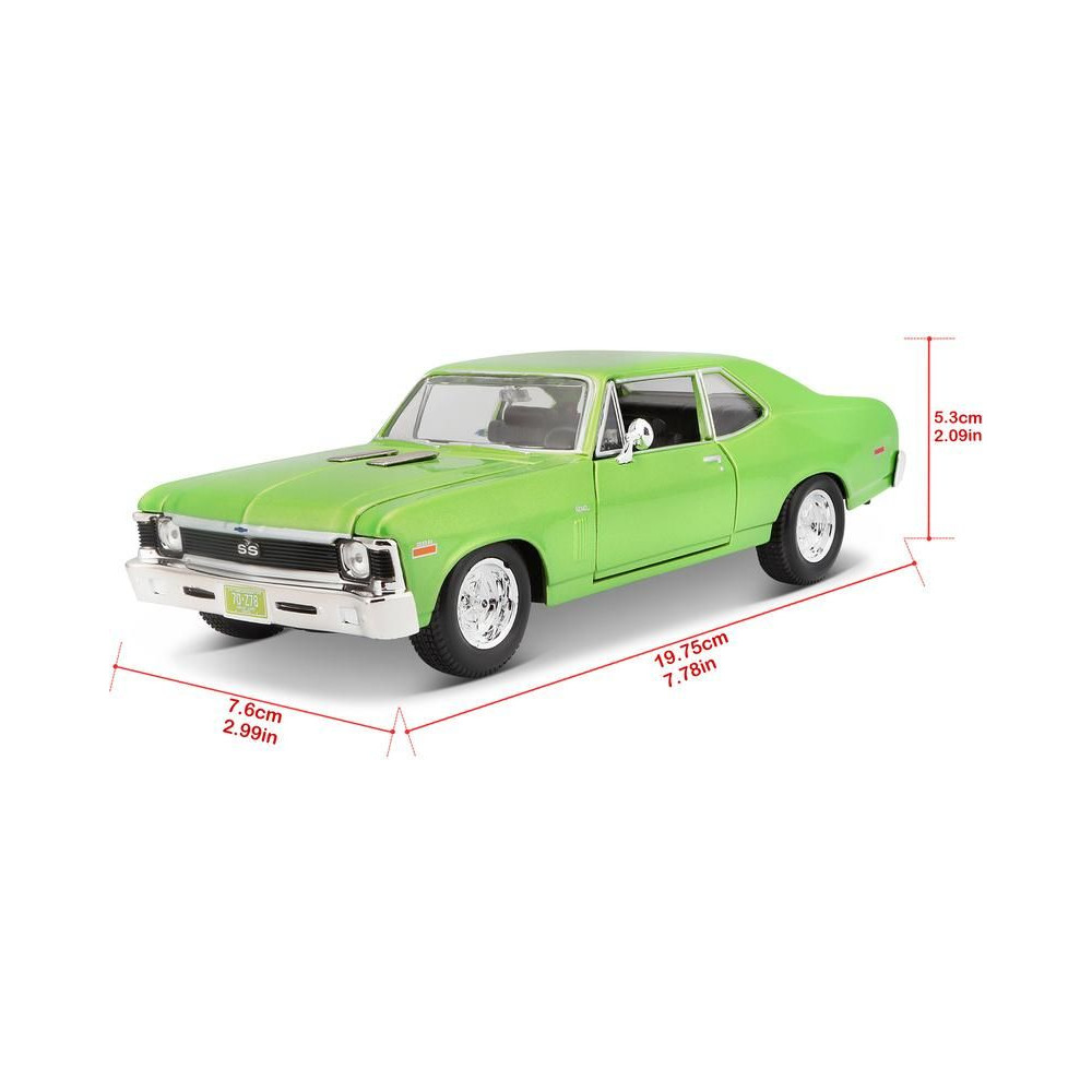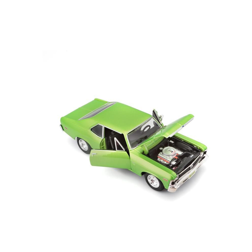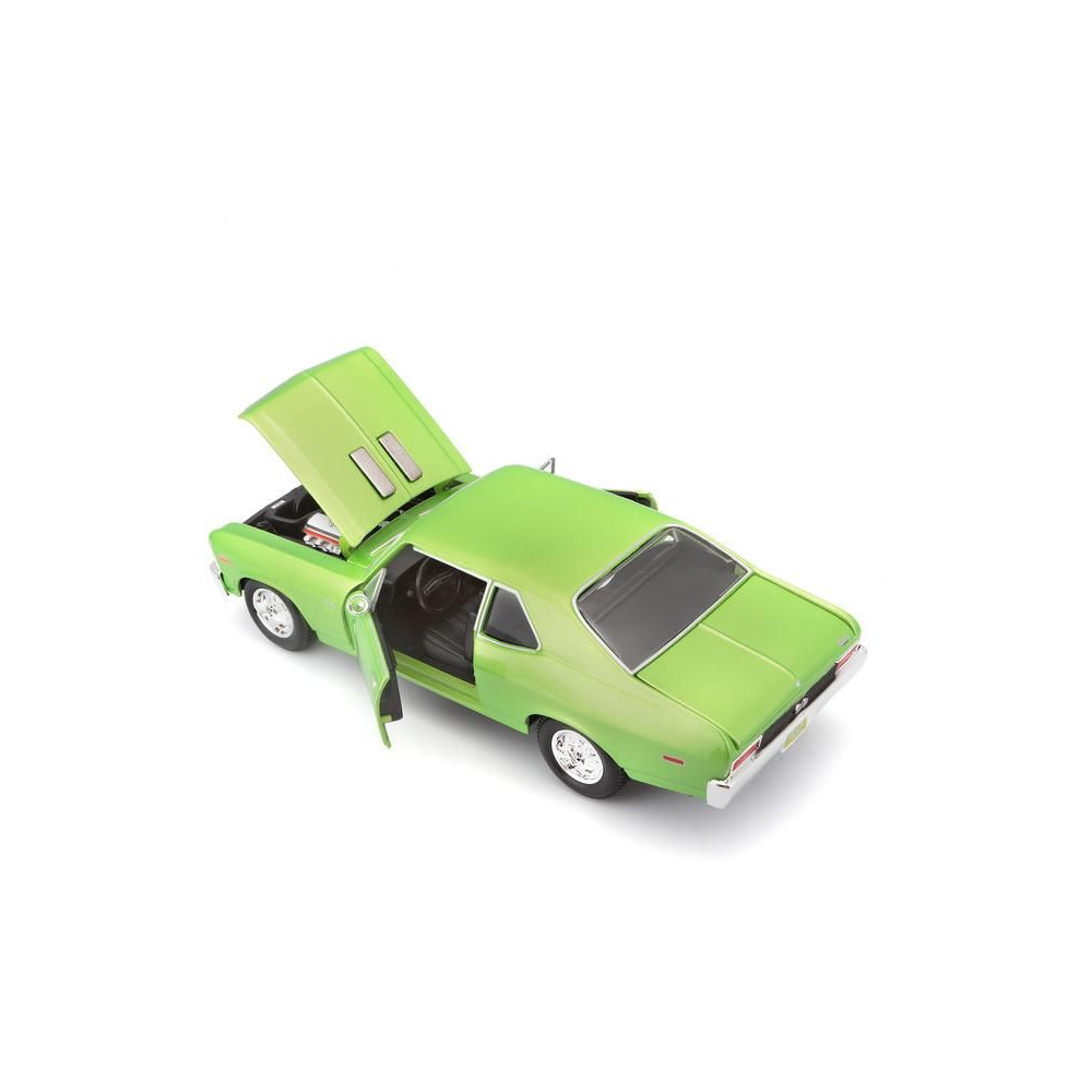Az 1:24 Maisto 31262 Chevrolet Nova SS 1970 fém autómodell nem csak gyűjtőknek való. A modell részletes kivitelben készült. A modell színe világoszöld metál.