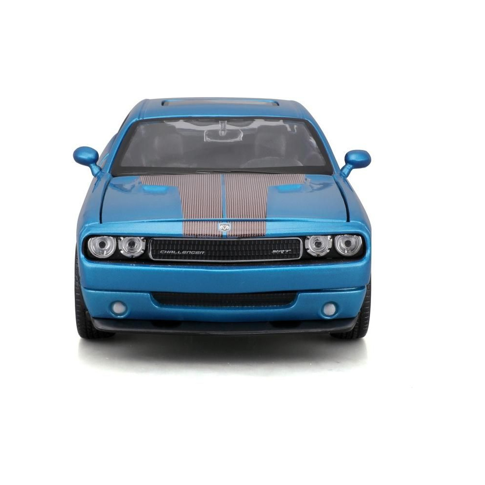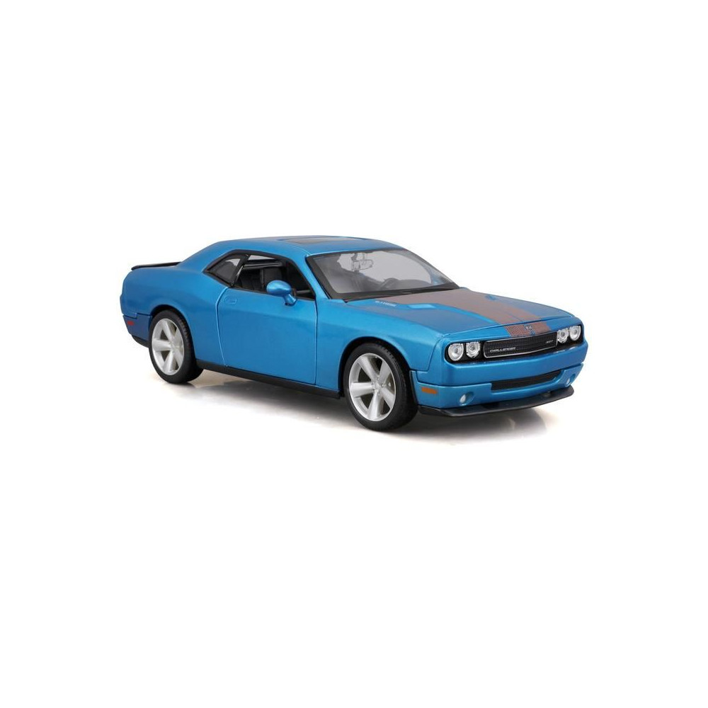Fém autómodell 1:24 Maisto 31280 Dodge Challenger SRT8 2008 nem csak gyűjtőknek. A modell részletes kivitelben készült. A modell színe metálkék.