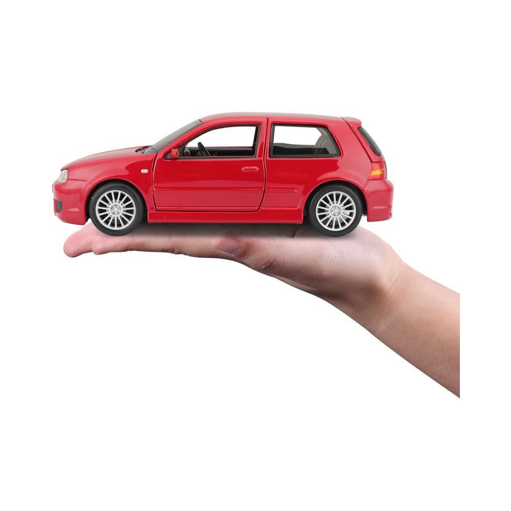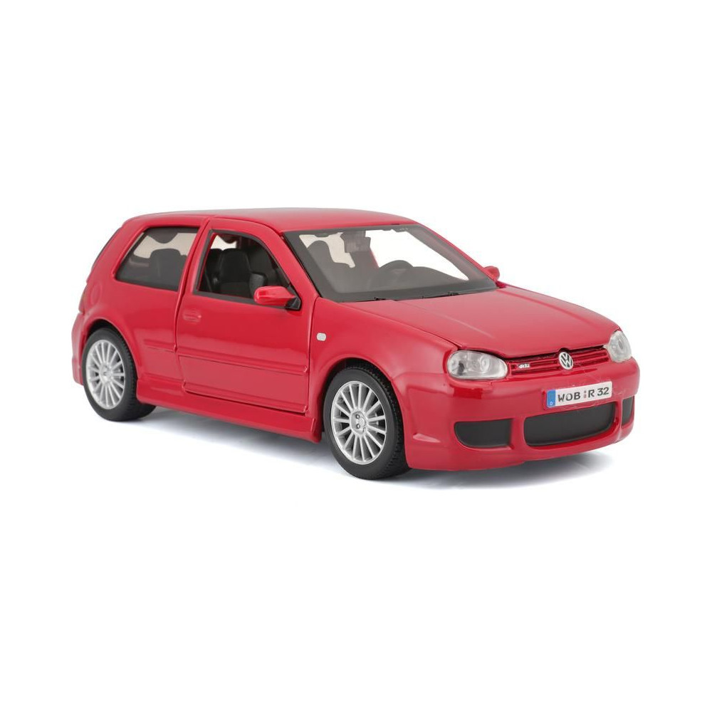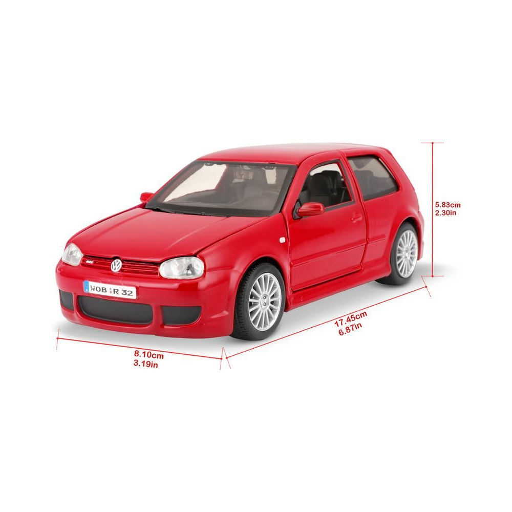 Fém modell autó 1:24 Maisto 31290 Volkswagen Golf R32 nem csak gyűjtőknek. A modell részletes kivitelben készült és nyitható ajtókkal rendelkezik. A modell színe piros, mérete kb. 17 cm.