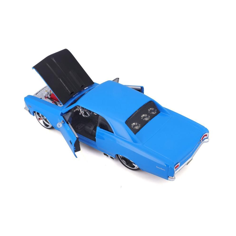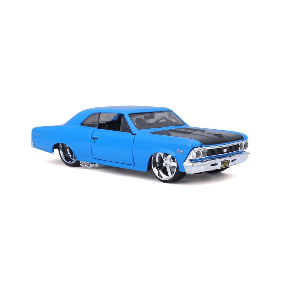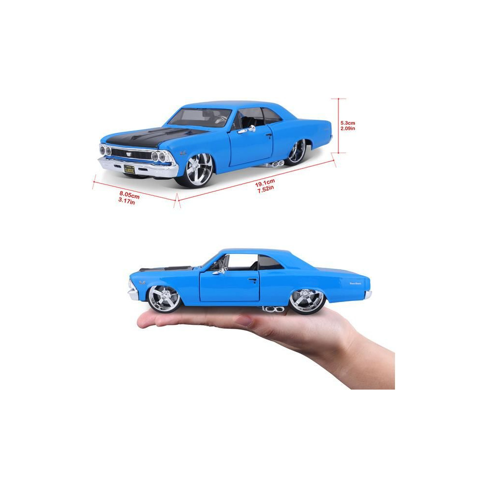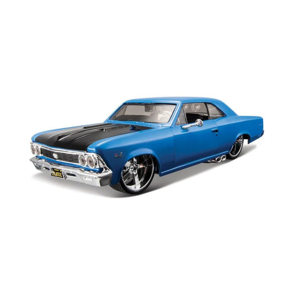 Fém autómodell 1:24 Maisto 31333 Chevrolet Chevelle SS 396 1966 nem csak gyűjtőknek. A modell részletes kivitelben készült és nyitható ajtókkal rendelkezik. A modell színe kék/fekete, mérete kb. 17 cm.