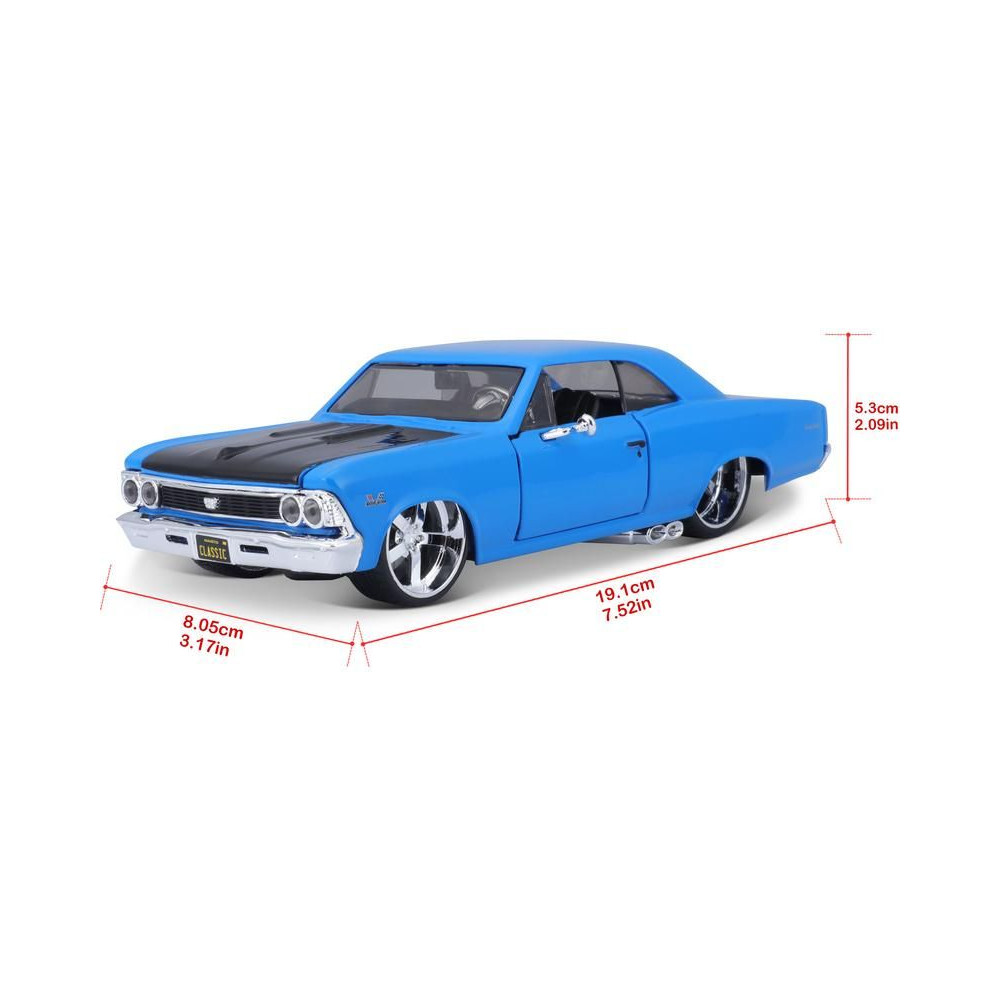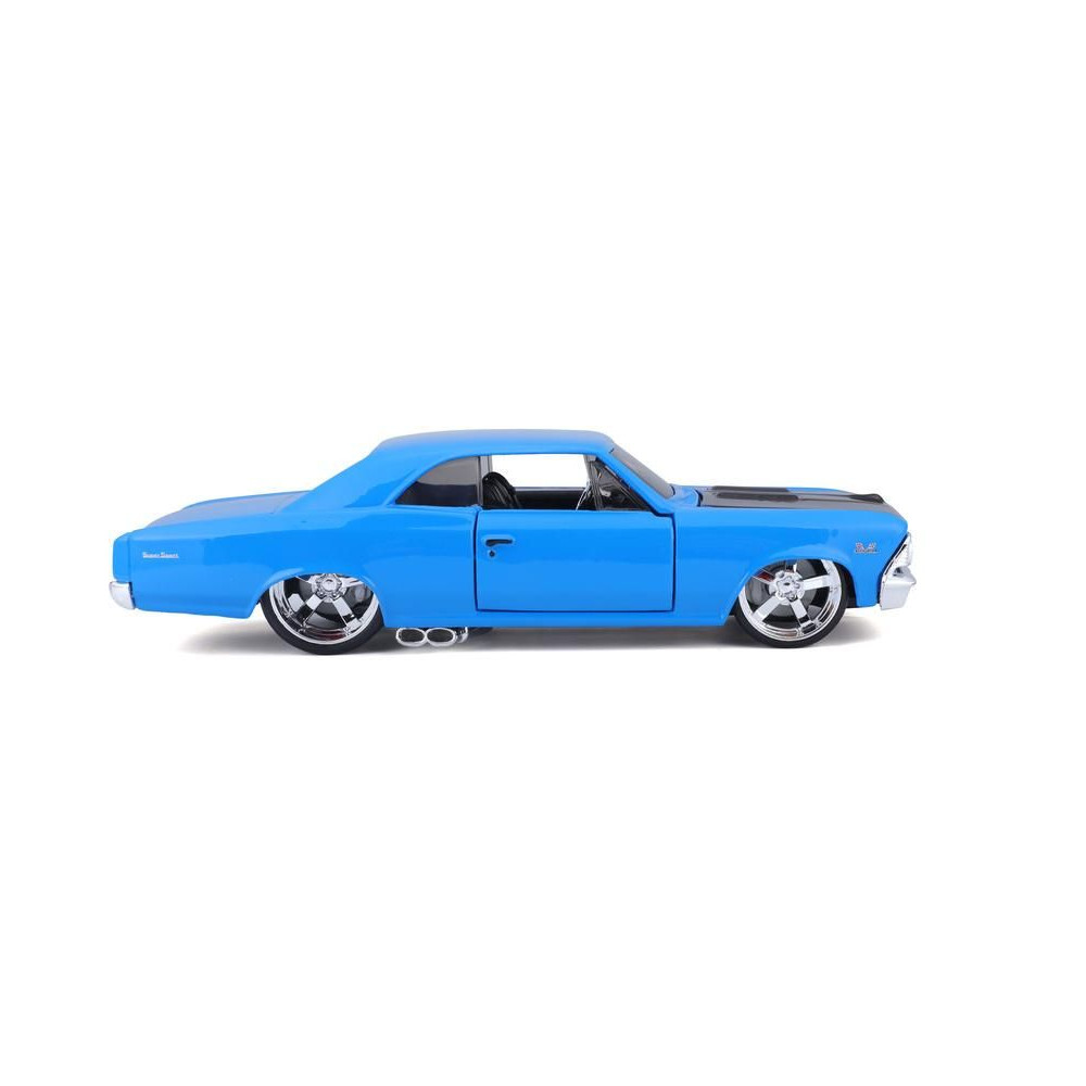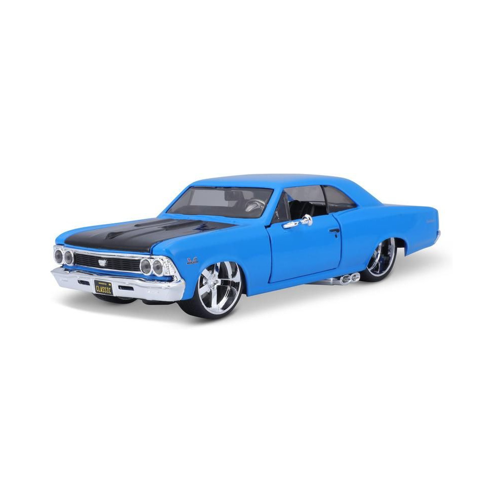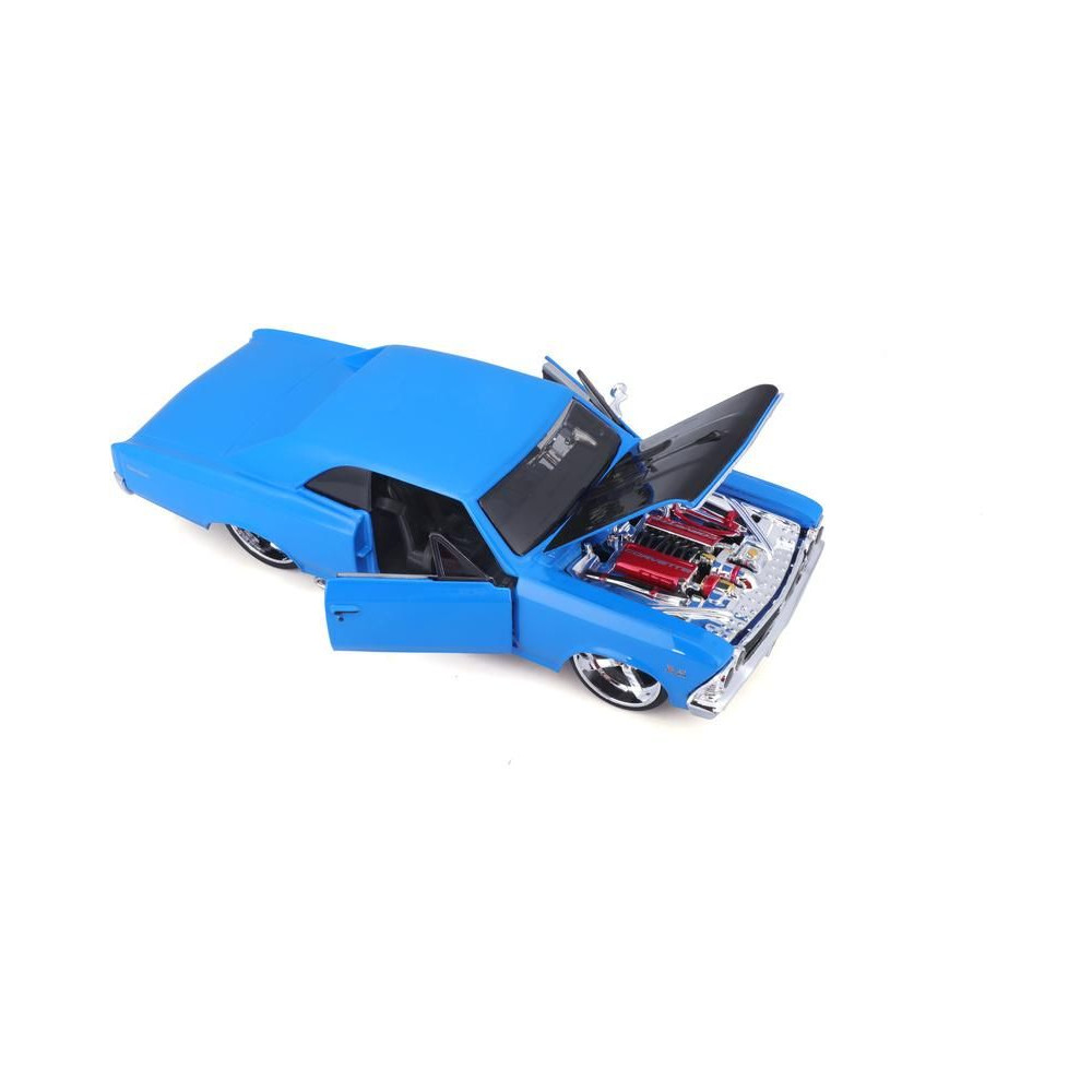 Fém autómodell 1:24 Maisto 31333 Chevrolet Chevelle SS 396 1966 nem csak gyűjtőknek. A modell részletes kivitelben készült és nyitható ajtókkal rendelkezik. A modell színe kék/fekete, mérete kb. 17 cm.