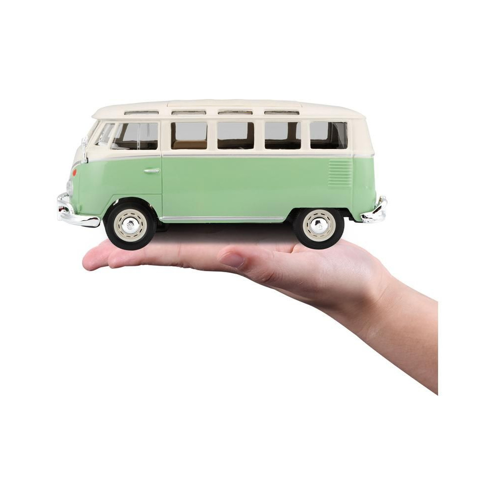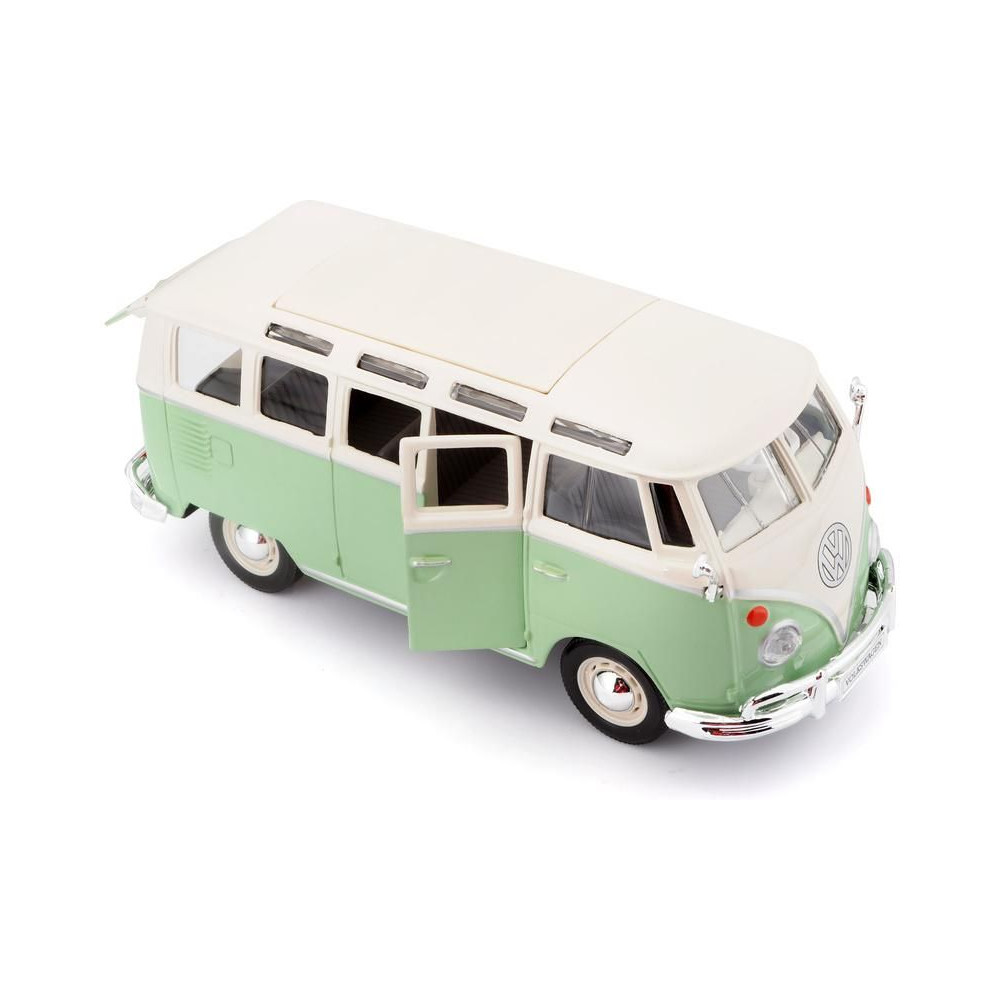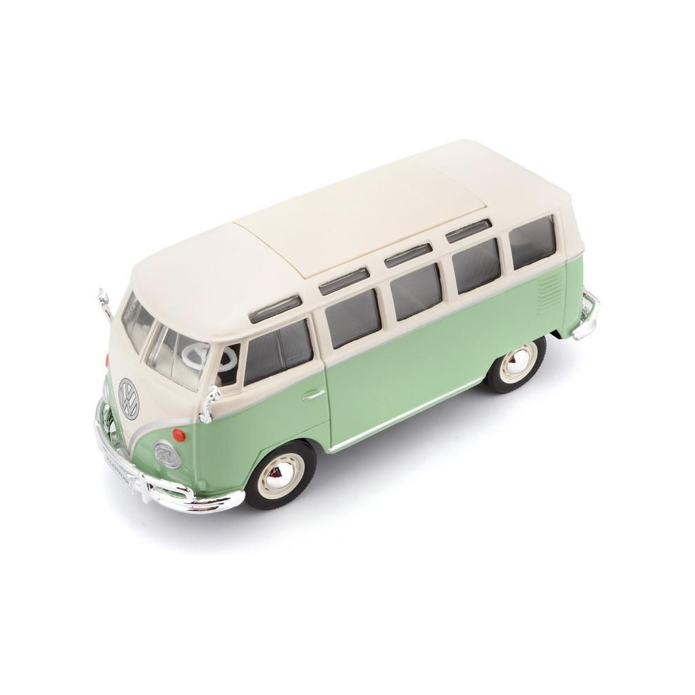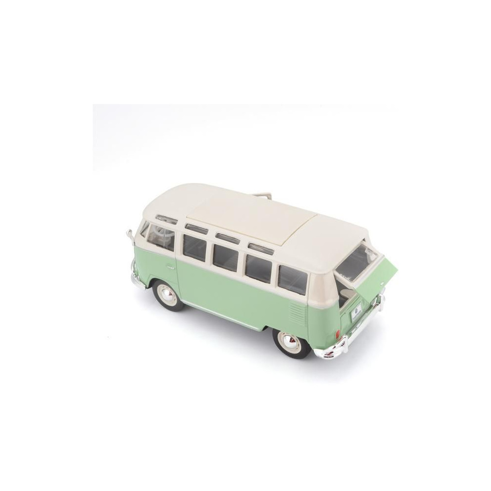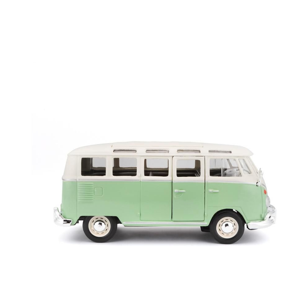 Fém autómodell 1:25 Maisto 31956 Volkswagen Van Samba nem csak gyűjtőknek. A modell részletes kivitelben készült. A modell színe zöld/krémszínű.