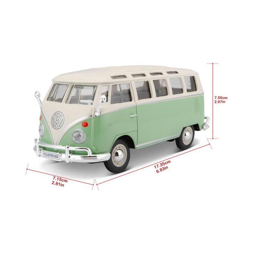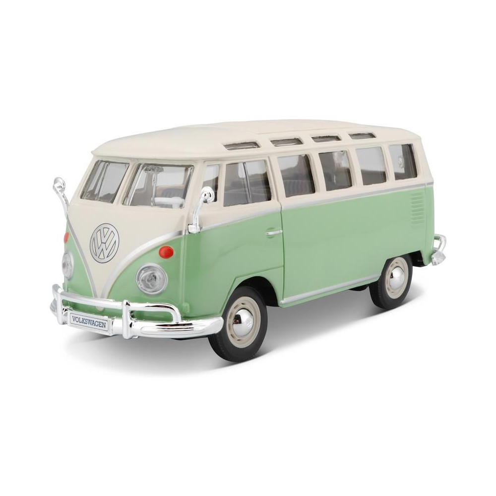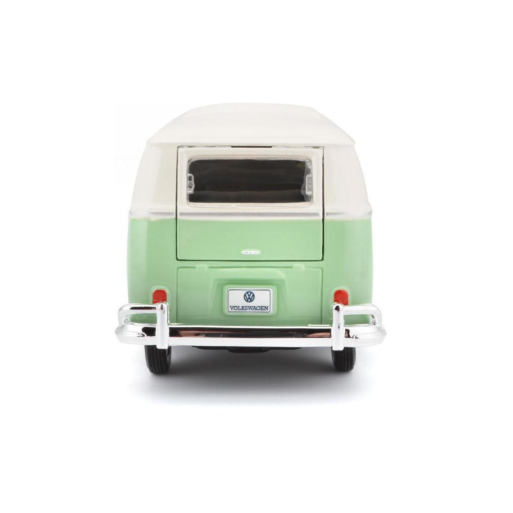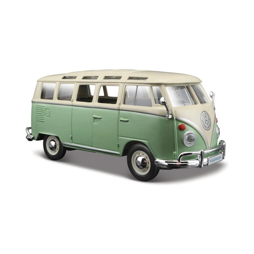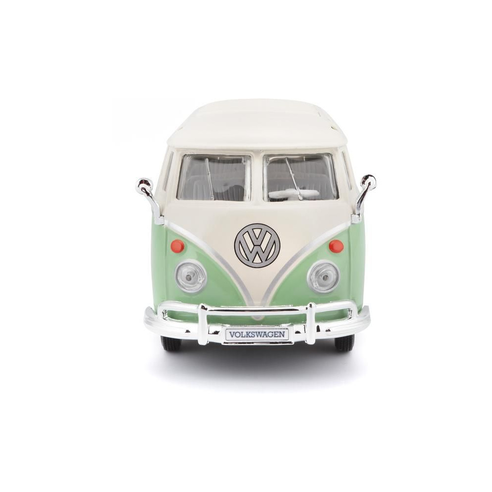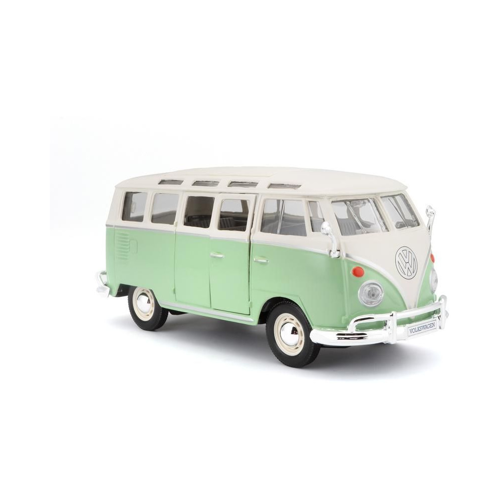 Fém autómodell 1:25 Maisto 31956 Volkswagen Van Samba nem csak gyűjtőknek. A modell részletes kivitelben készült. A modell színe zöld/krémszínű.
