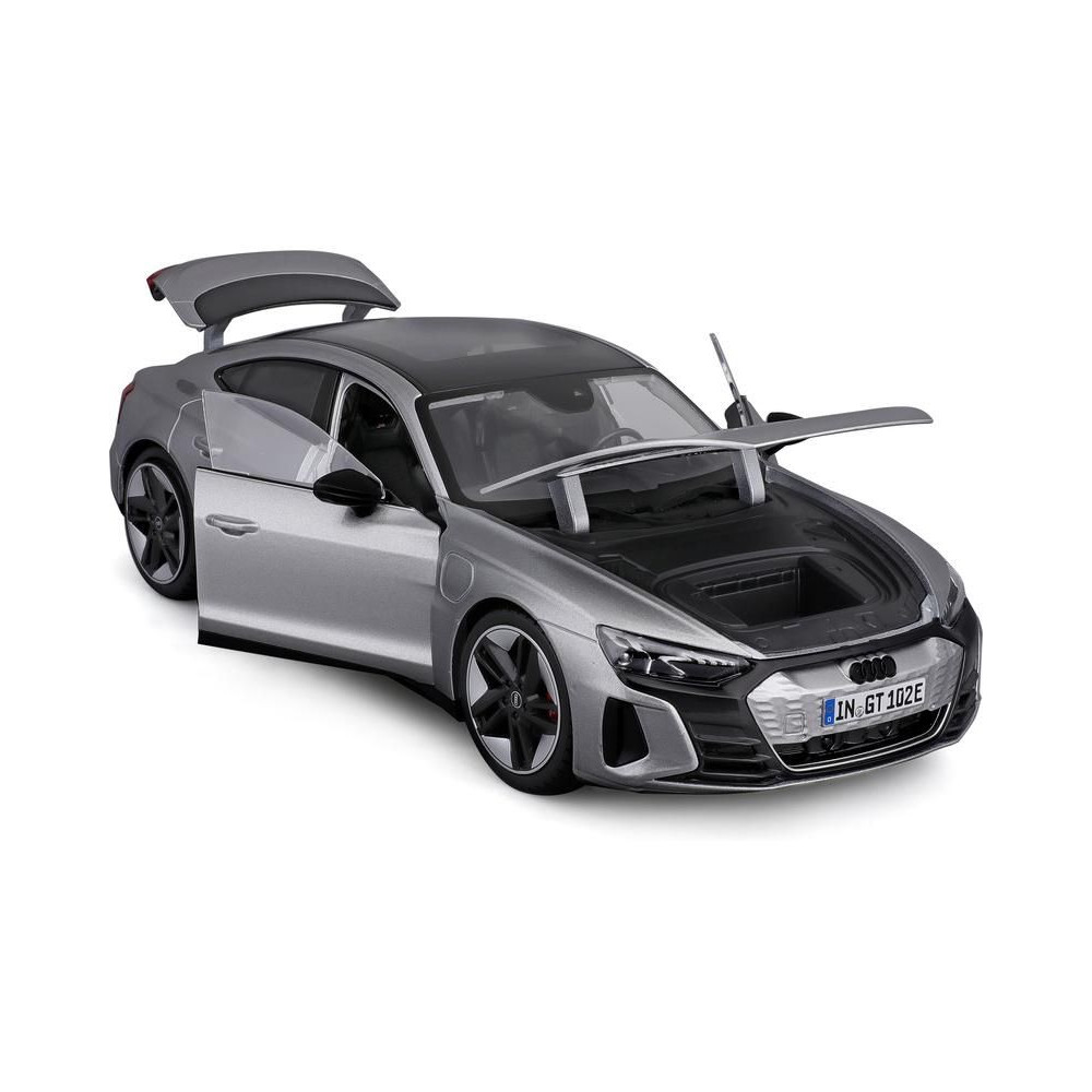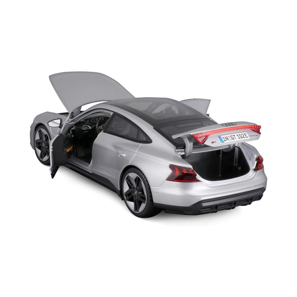 Az 1:18 Bburago 18-11050 Audi RS E-tron GT fém autómodell nem csak gyűjtőknek való. A modell színe ezüst.