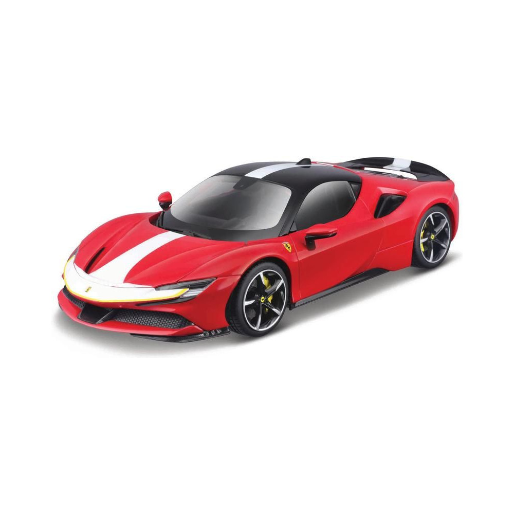 Bburago 18-16911 Signature - Ferrari SF90 Stradale Assetto Fiorano fém modellje 1:18 méretarányban nem csak gyűjtőknek. A modell nyitható ajtókkal és motorháztetővel, felfüggesztő tengelyekkel, kormánykerék forgatással rendelkezik. A modell csúcsminőségű Signature sorozatban készült. A modell színe piros, mérete kb. 24 cm.