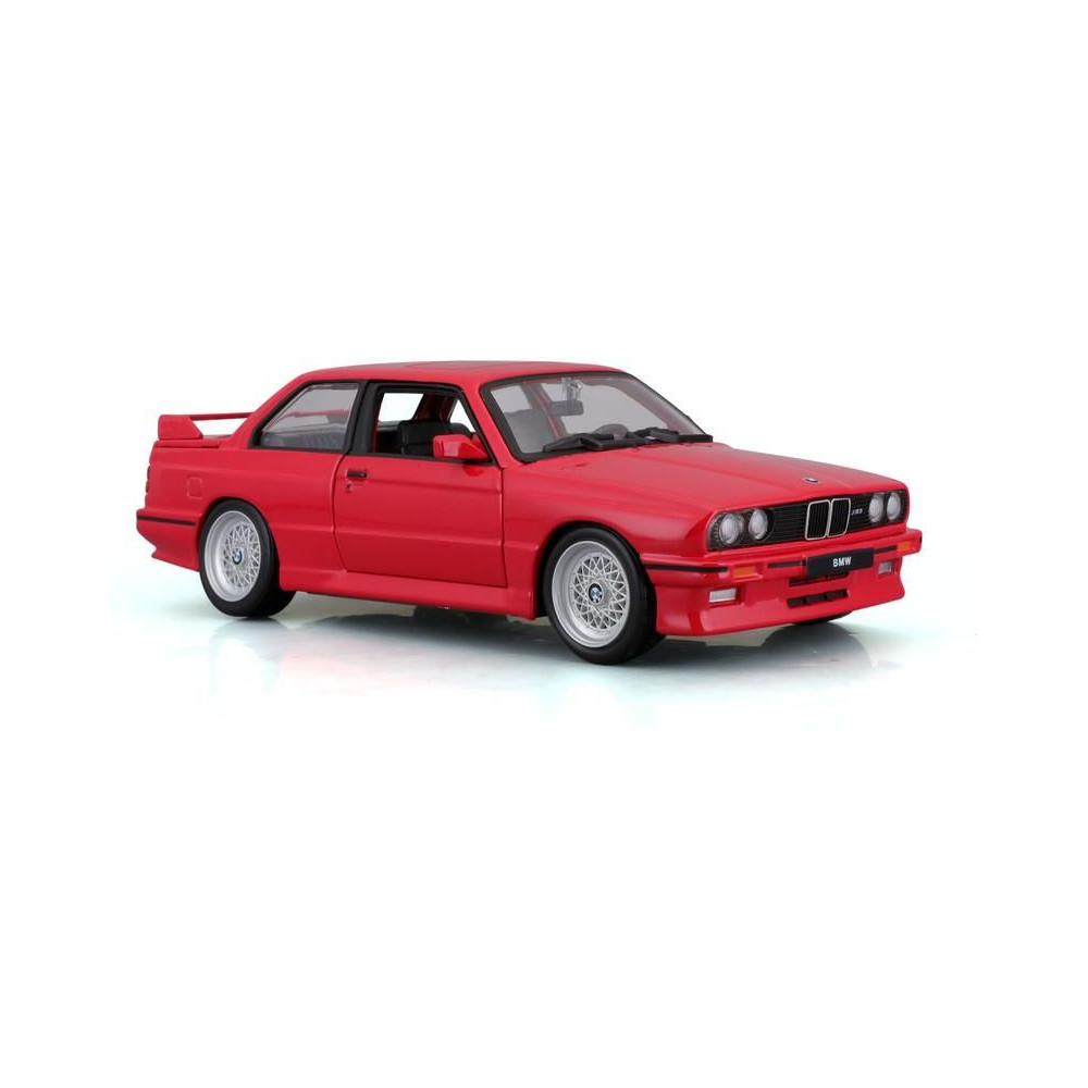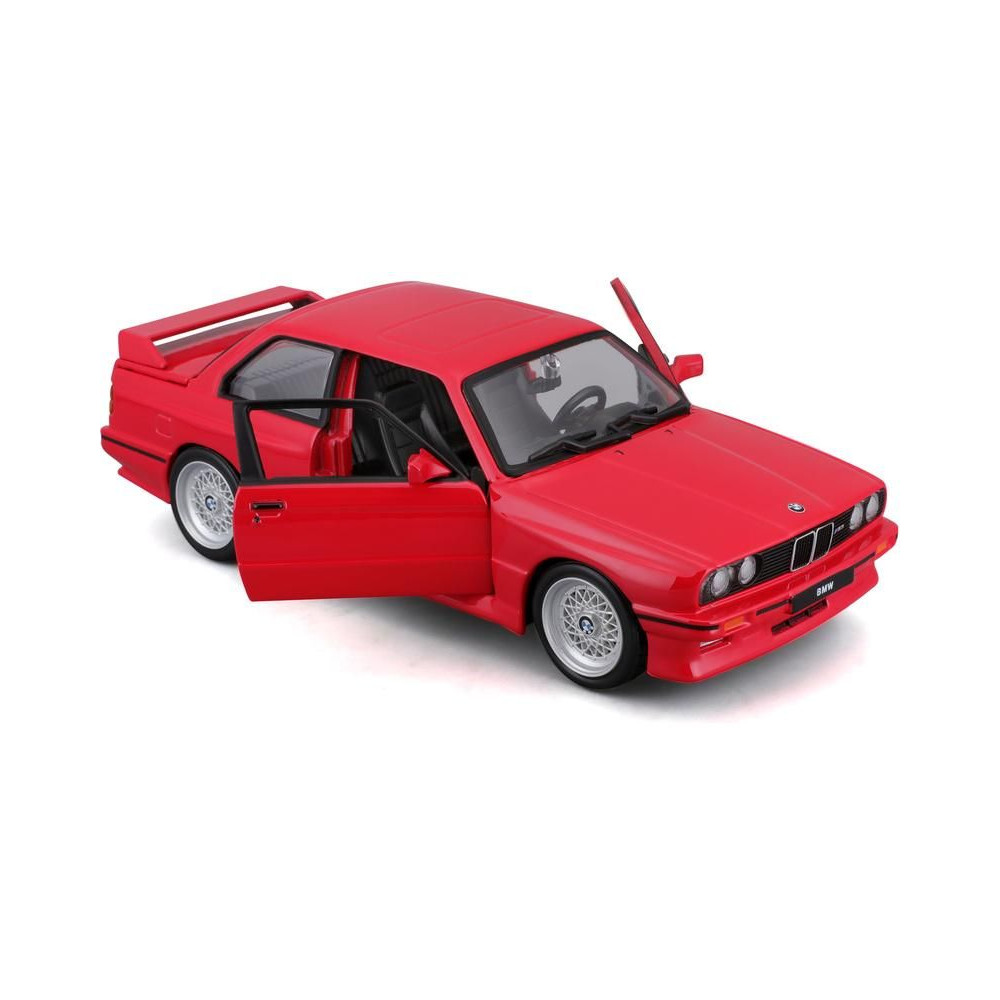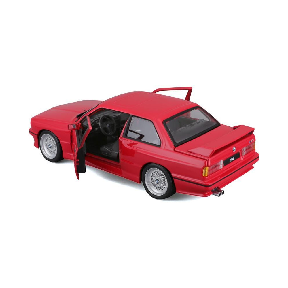 Fém autómodell 1:24 Bburago 18-21100 BMW 3 Series M3 1988 nem csak gyűjtőknek. Nyitható ajtókkal rendelkezik, a modell színe piros és kb. 19 cm nagy.
