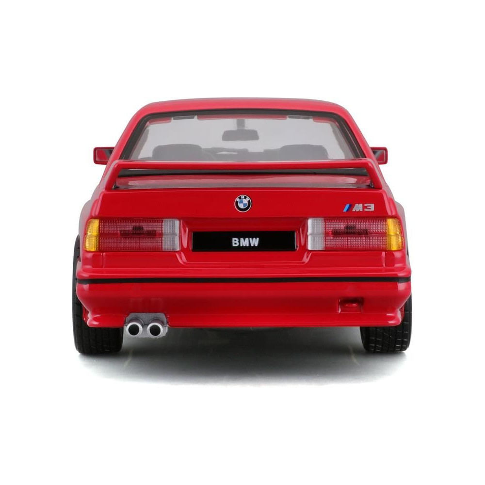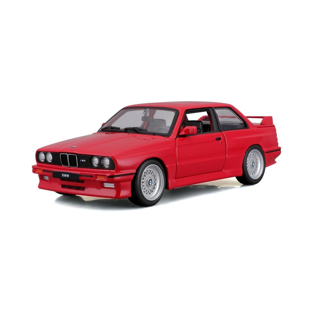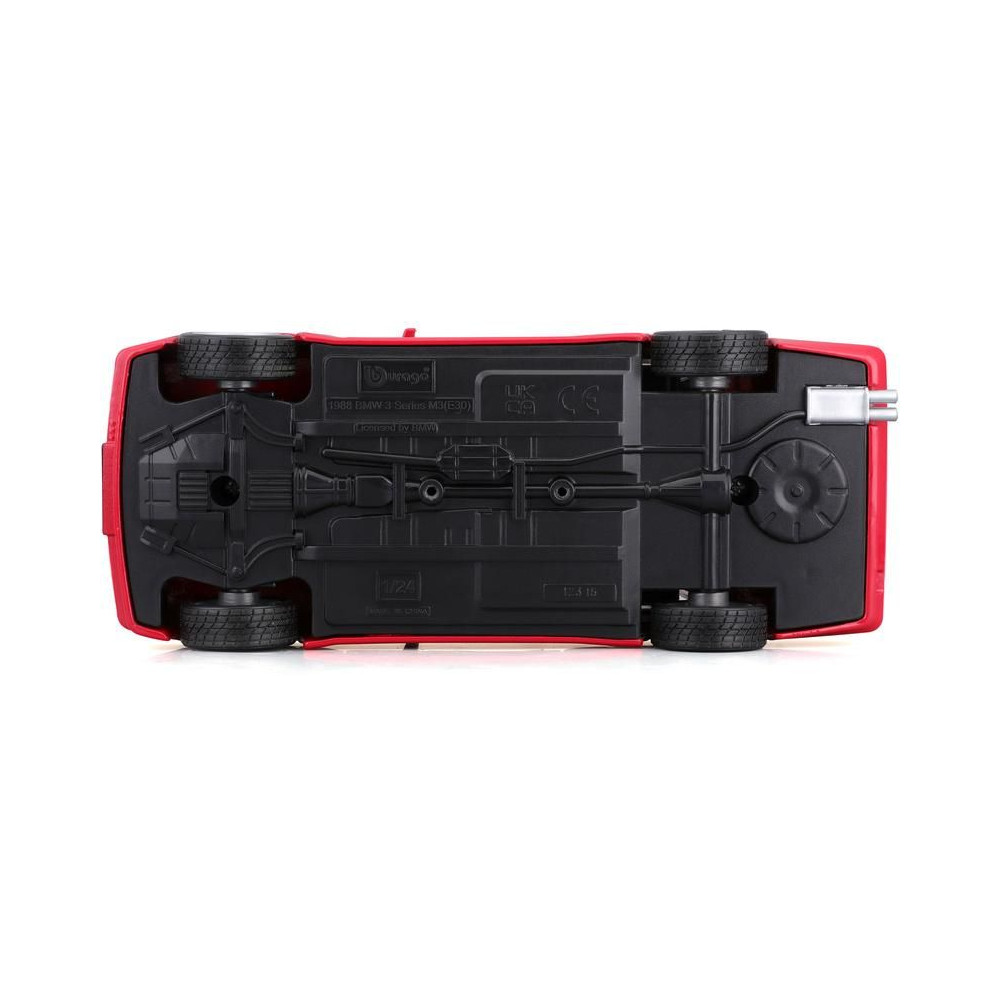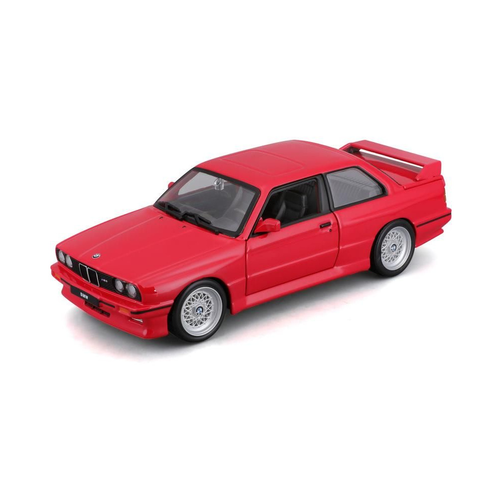 Fém autómodell 1:24 Bburago 18-21100 BMW 3 Series M3 1988 nem csak gyűjtőknek. Nyitható ajtókkal rendelkezik, a modell színe piros és kb. 19 cm nagy.