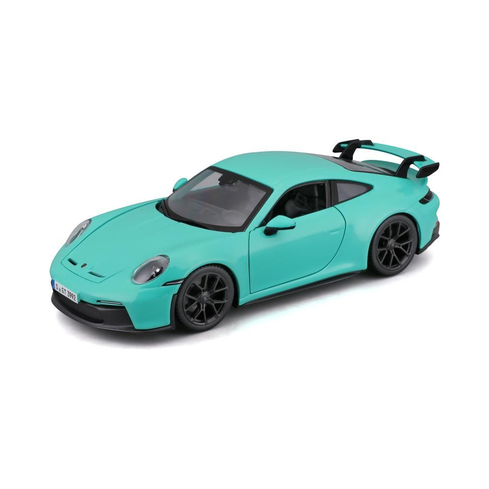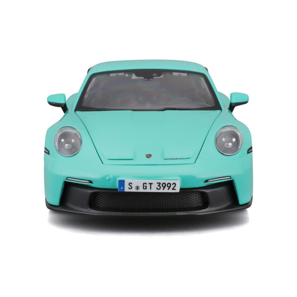 Fém autómodell 1:24 Bburago 18-21104 Porsche 911 GT3 nem csak gyűjtőknek. Nyitható ajtókkal rendelkezik, a modell színe mentazöld.