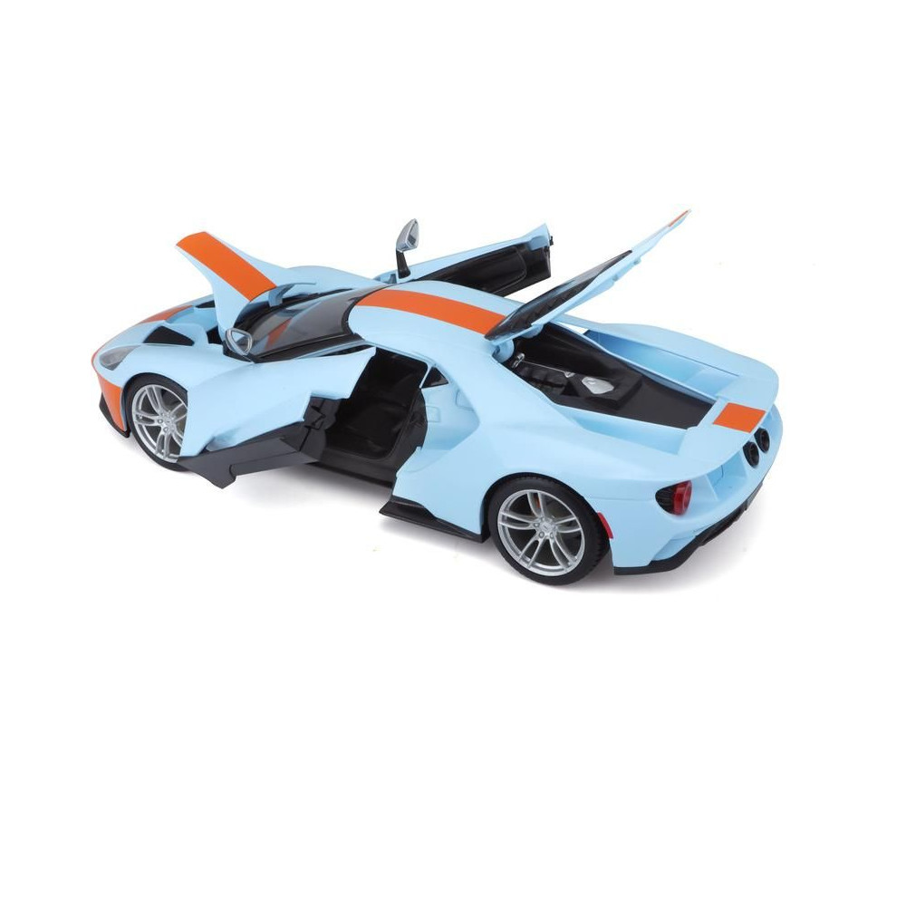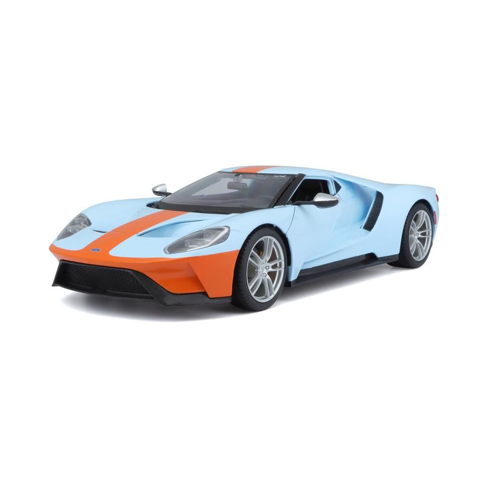 Fém autómodell 1:18 Maisto Ford GT 2017 nem csak gyűjtőknek. A modell részletes kivitelben, műanyag alapon található. A modell színe kék-narancs.