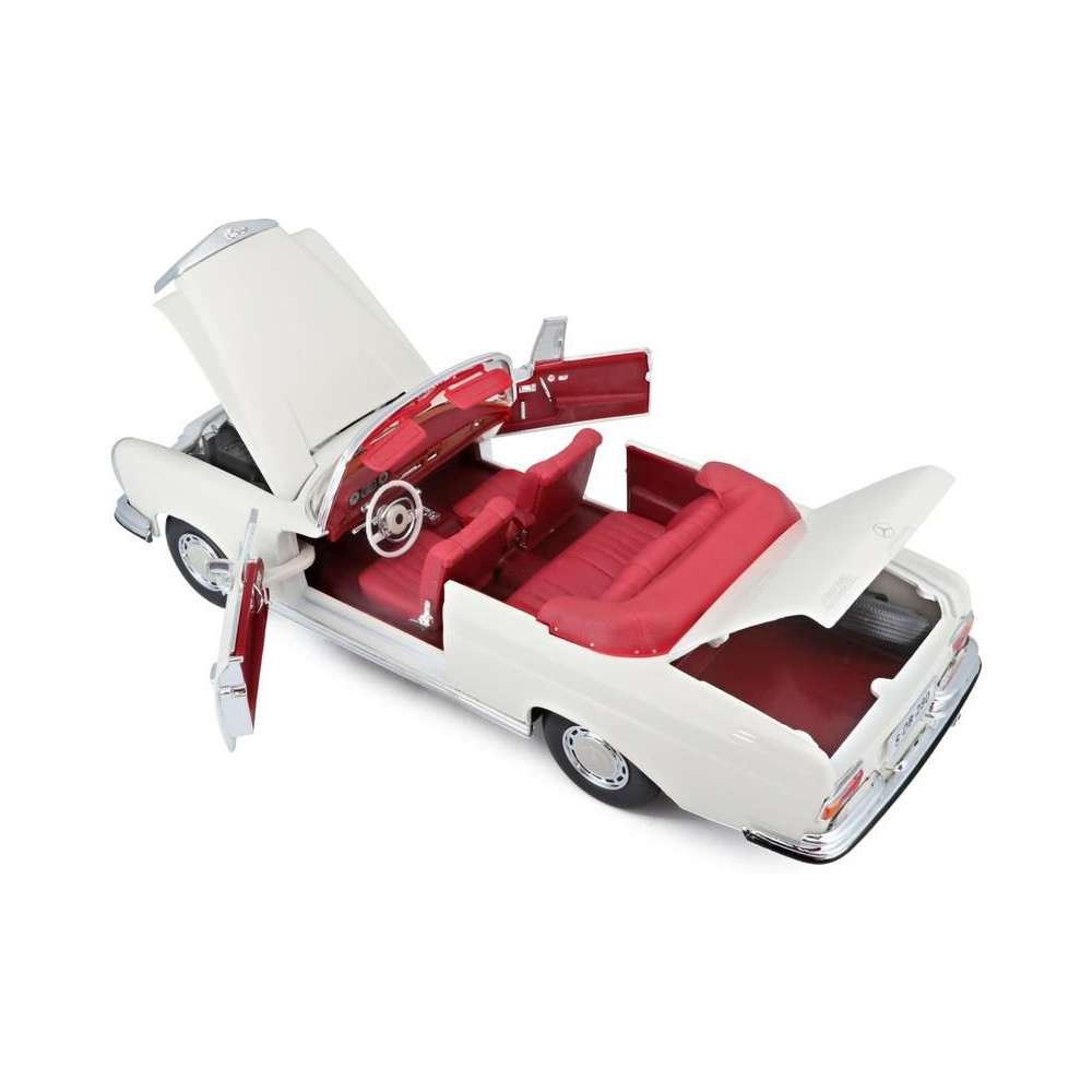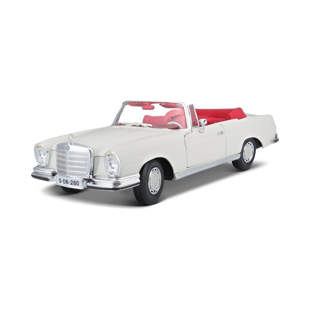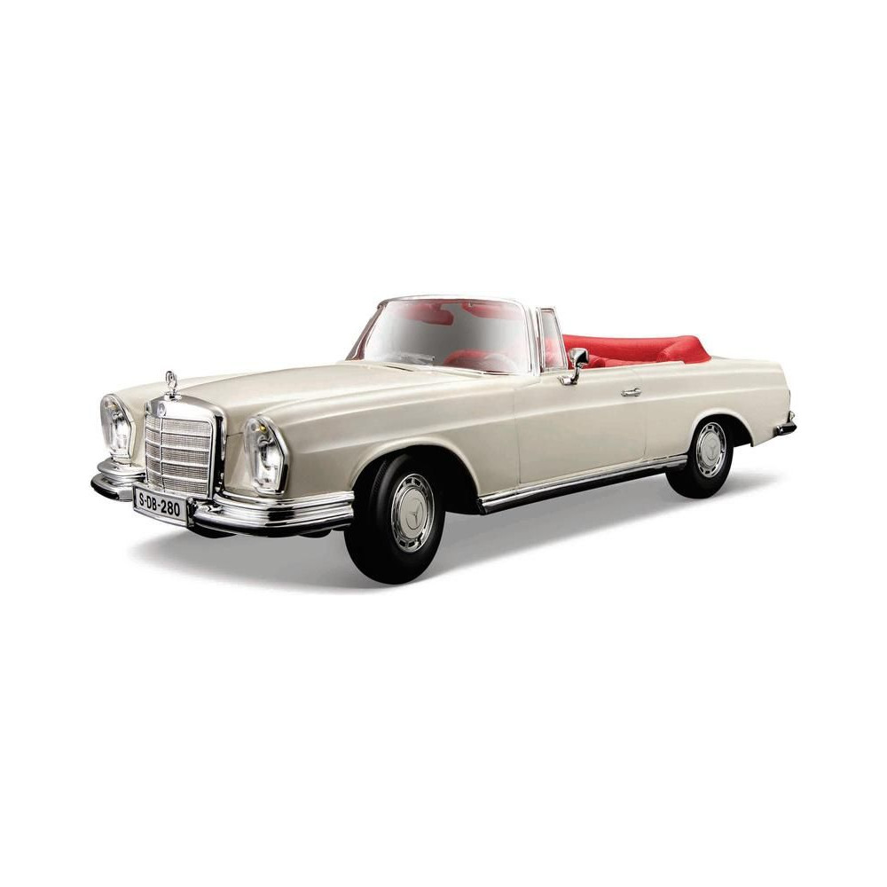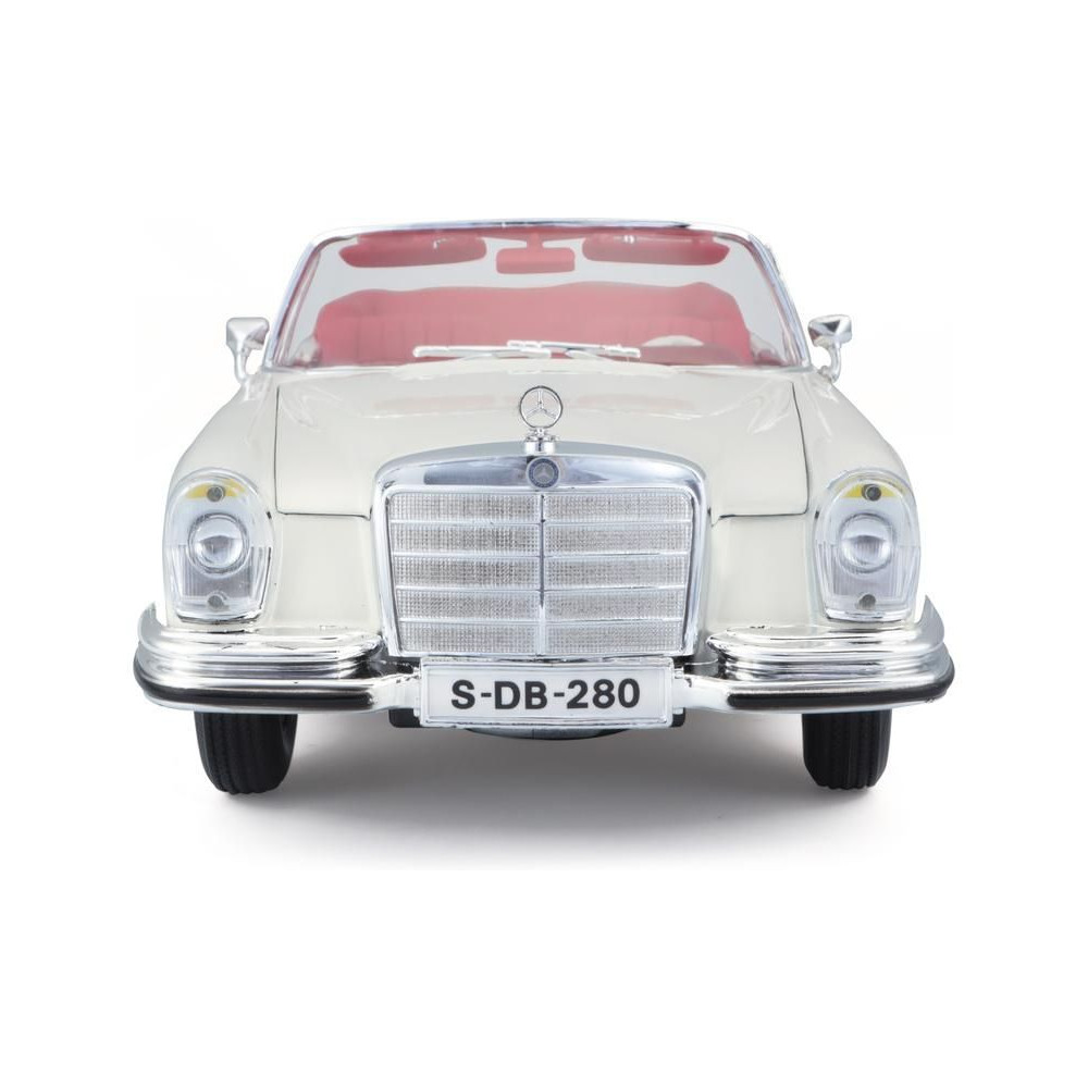 Fém autómodell 1:18 Maisto 31811 Mercedes-Benz 280SE Cabrio 1967 nem csak gyűjtőknek. A modell részletes kivitelben, műanyag alapon található. A modell színe krémszínű.