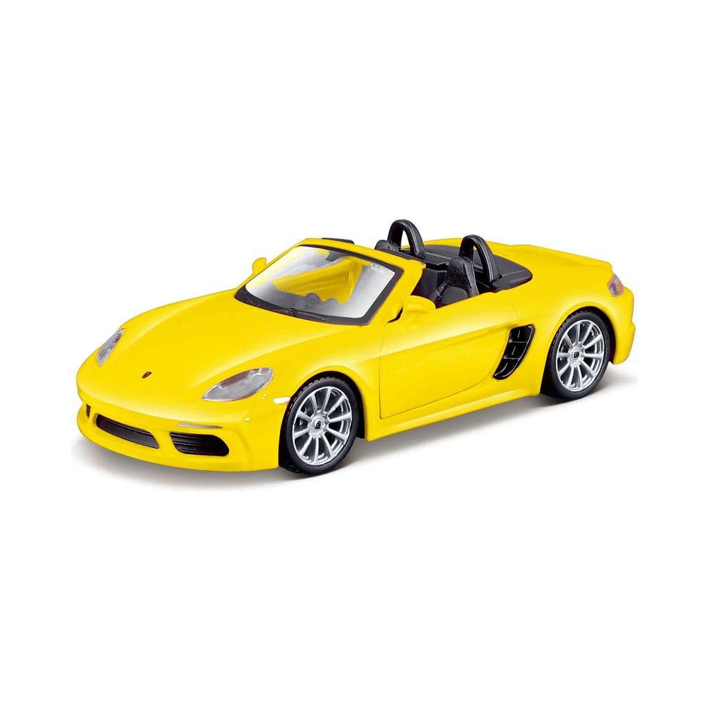 Fémmodell Maisto 18876 Porsche 718 Boxster 1:39 méretarányban nem csak gyűjtőknek. Részletes kivitelezés, kedvező ár, sárga szín, hossza kb. 11 cm. A modell nyitható ajtókkal rendelkezik és lendkeréken áll.
