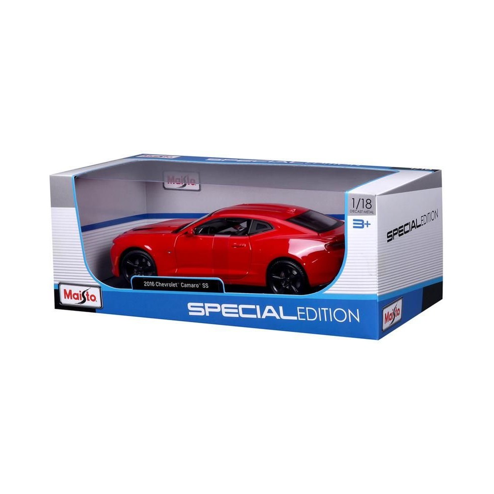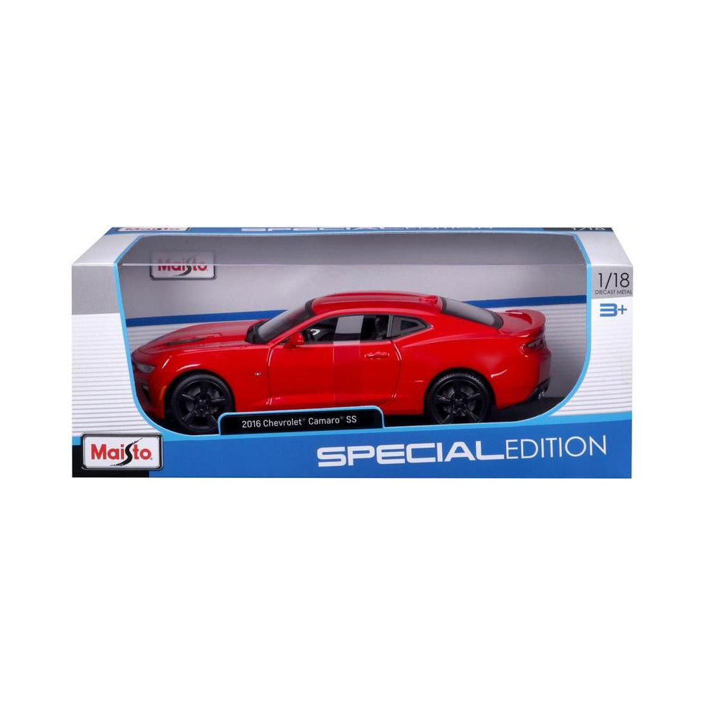 Fém autómodell 1:18 Maisto 31689R Chevrolet Camaro SS 2016 nem csak gyűjtőknek. A modell részletes kivitelben, műanyag alapon található. A modell színe piros, mérete pedig körülbelül 26 cm.