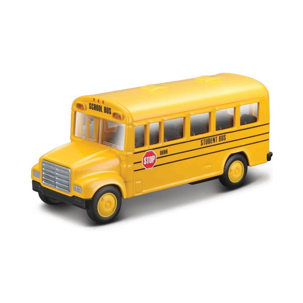 Fém modell Maisto 17056 Iskolabusz 1:50 méretarányban nem csak gyűjtőknek. Részletes kivitelezés, baráti ár, sárga szín, hossza kb. 11 cm. A modell nyitható ajtókkal rendelkezik és felhúzó mechanizmust tartalmaz.