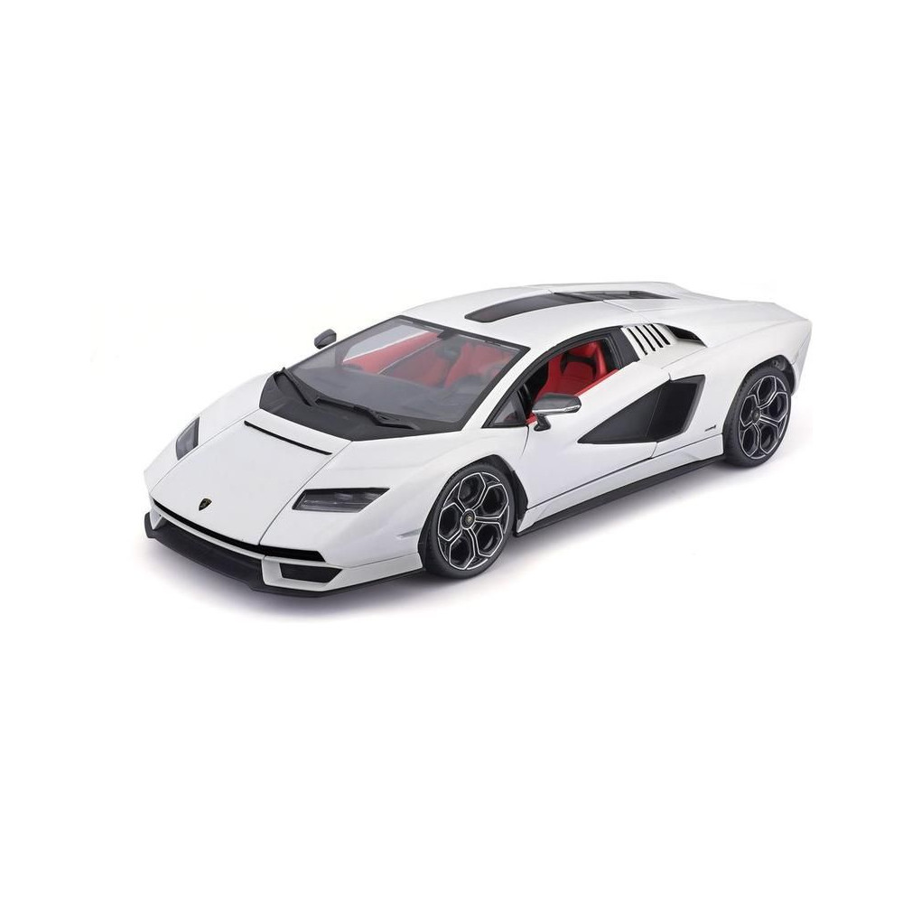 1:18-as Maisto 31459W Lamborghini Countach LPI 800-4 fém autómodell, nem csak gyűjtőknek. A modell részletesen kidolgozott és nyitható ajtóval rendelkezik. A modell színe fehér metálfényű és körülbelül 27 cm magas.