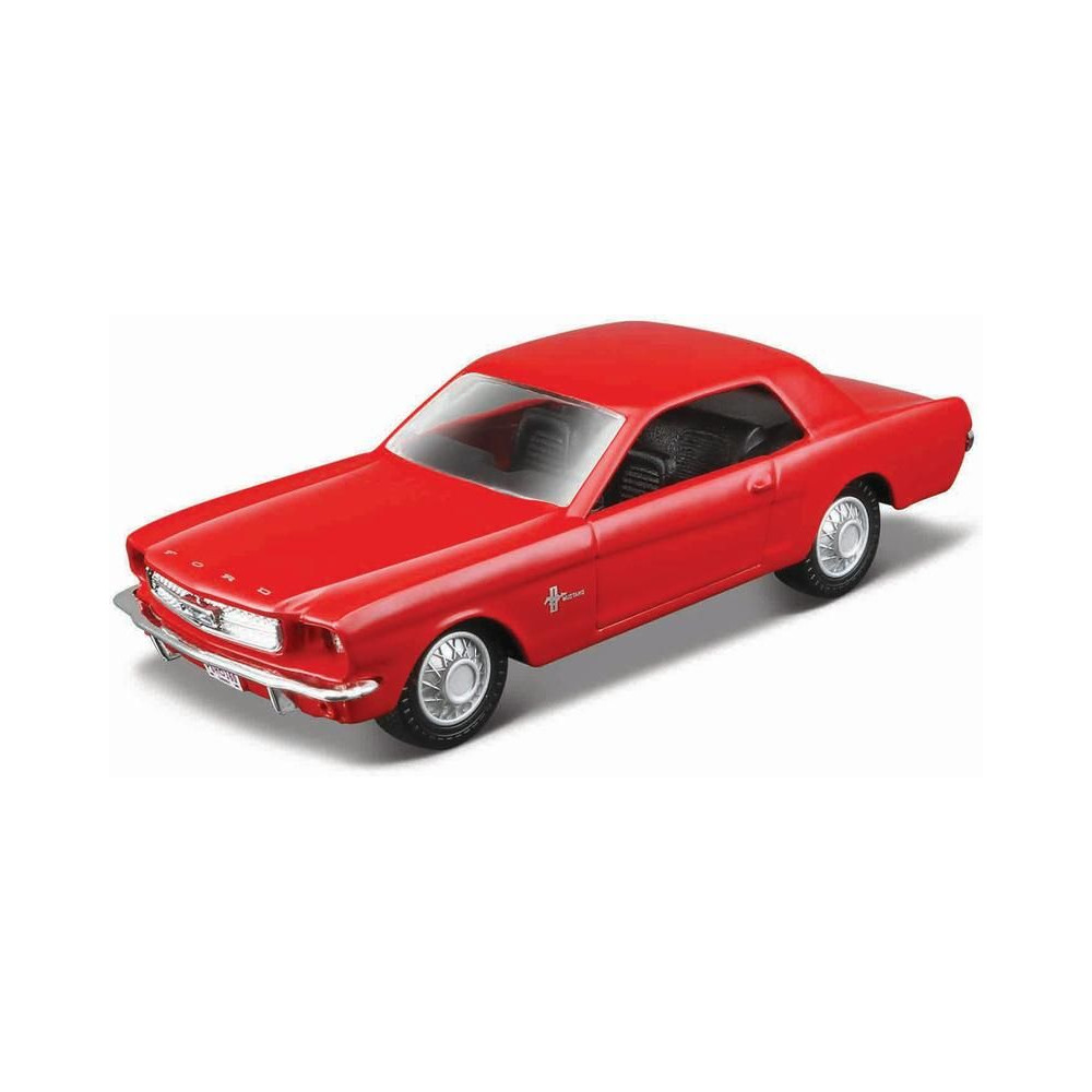 1:43-as Maisto 09854 Ford Mustang 1965 fém autómodell, nem csak gyűjtőknek. A modell részletesen kidolgozott, a színe piros, és körülbelül 95 mm méretű.